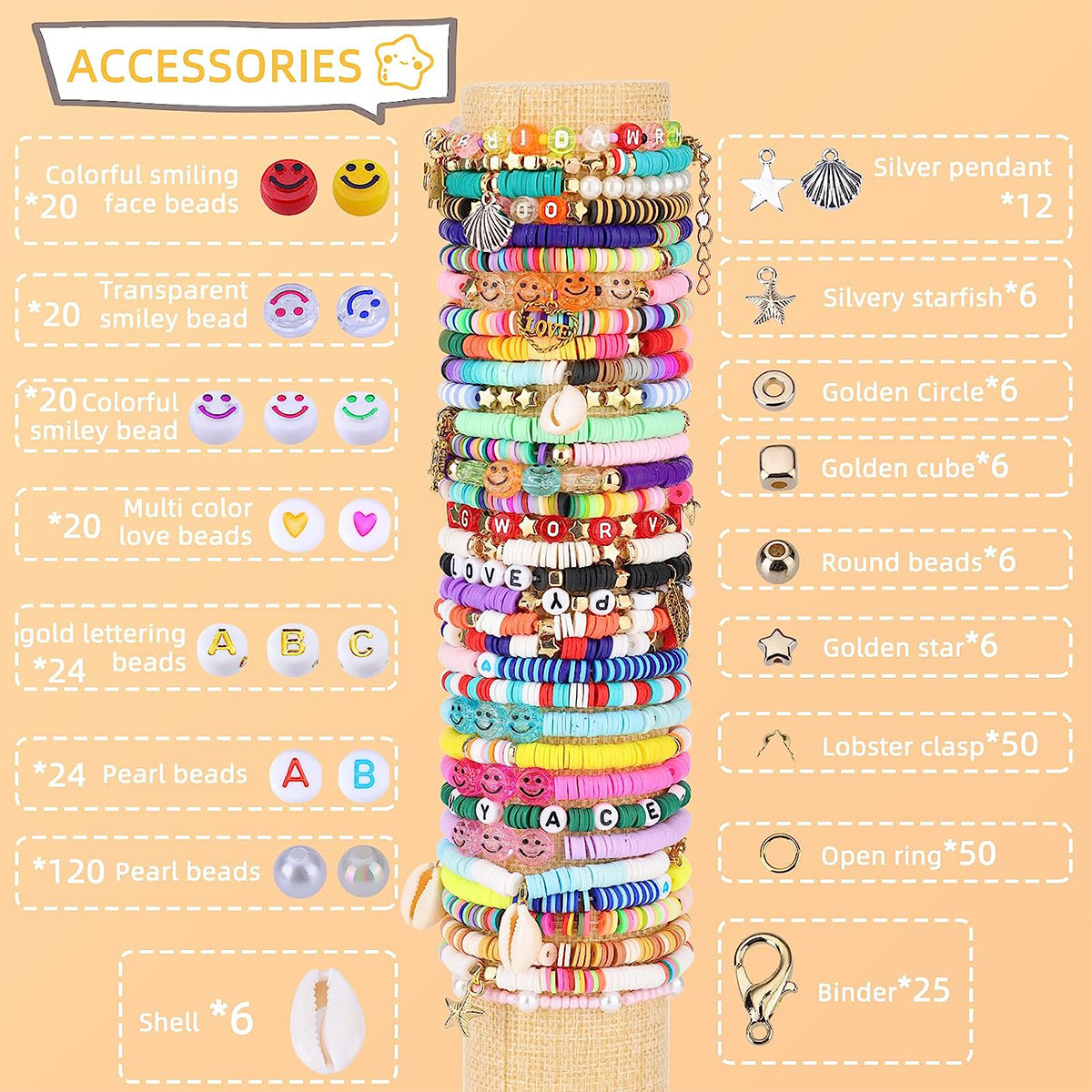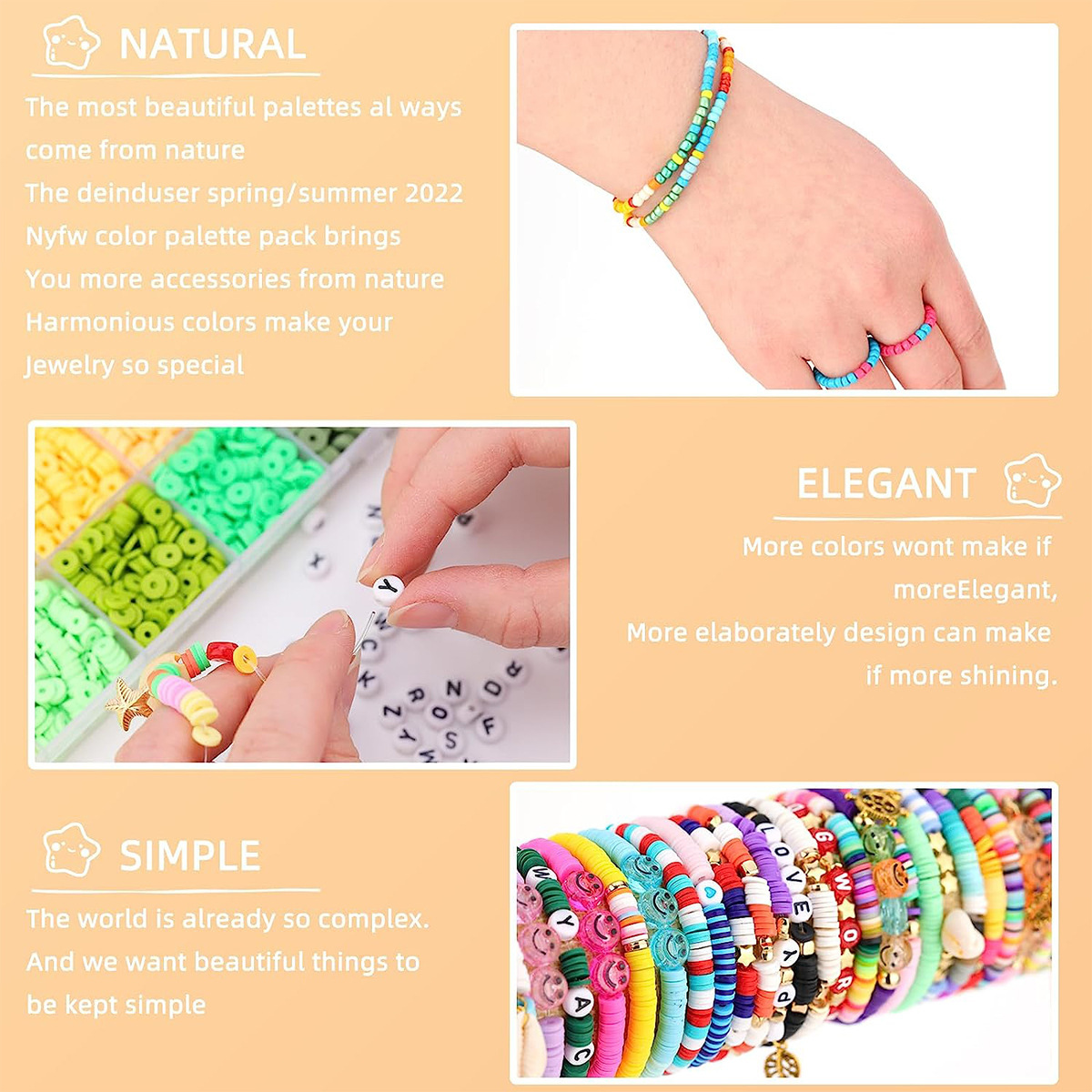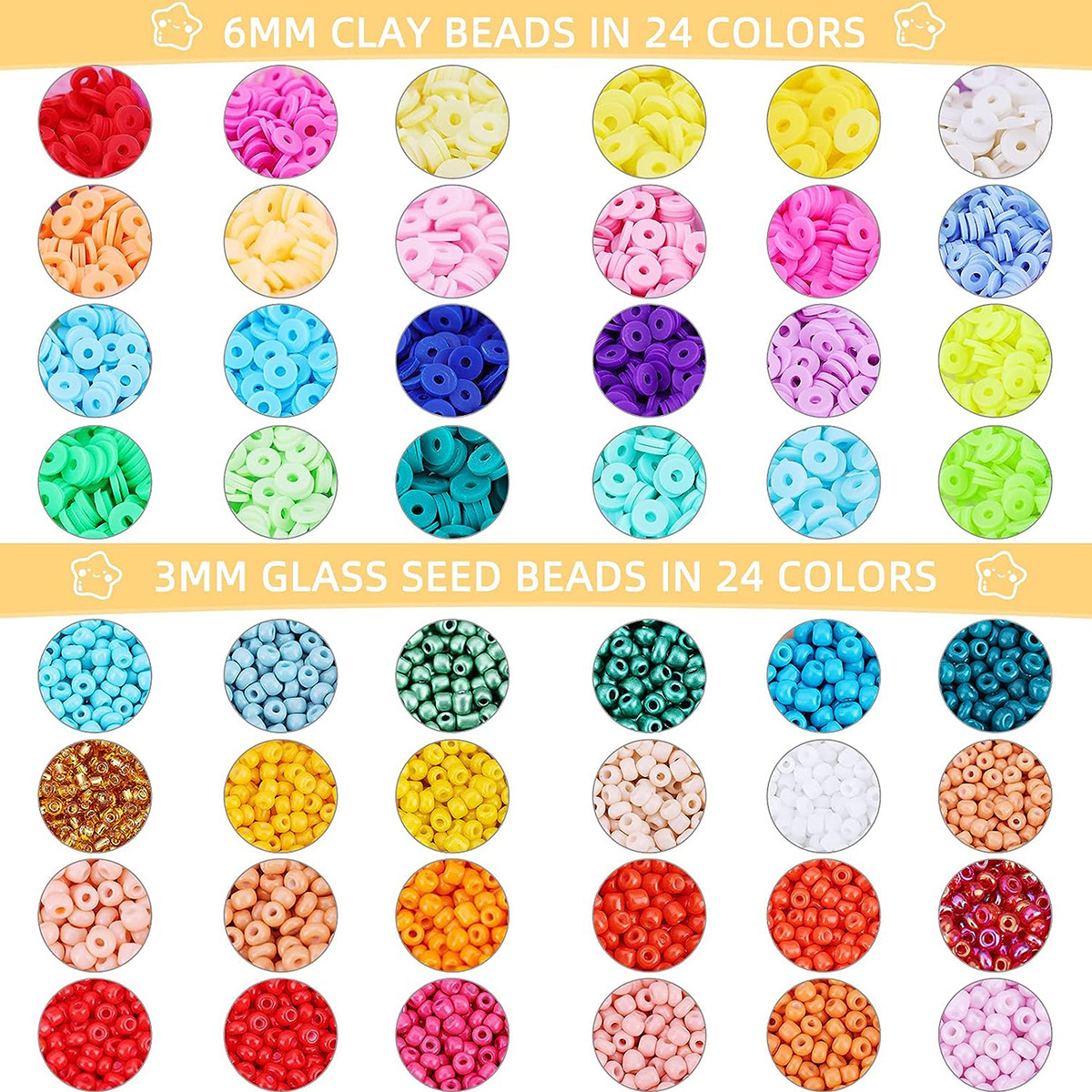 アマゾンの人気48色の米珠ソフト陶片散珠間隔珠字母珠笑顔珠弾力線diyカバー