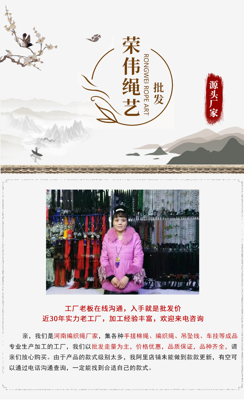 72番線手編み金剛結平結びロープ木彫りキーホルダーストラップ子平結びバックルロープ