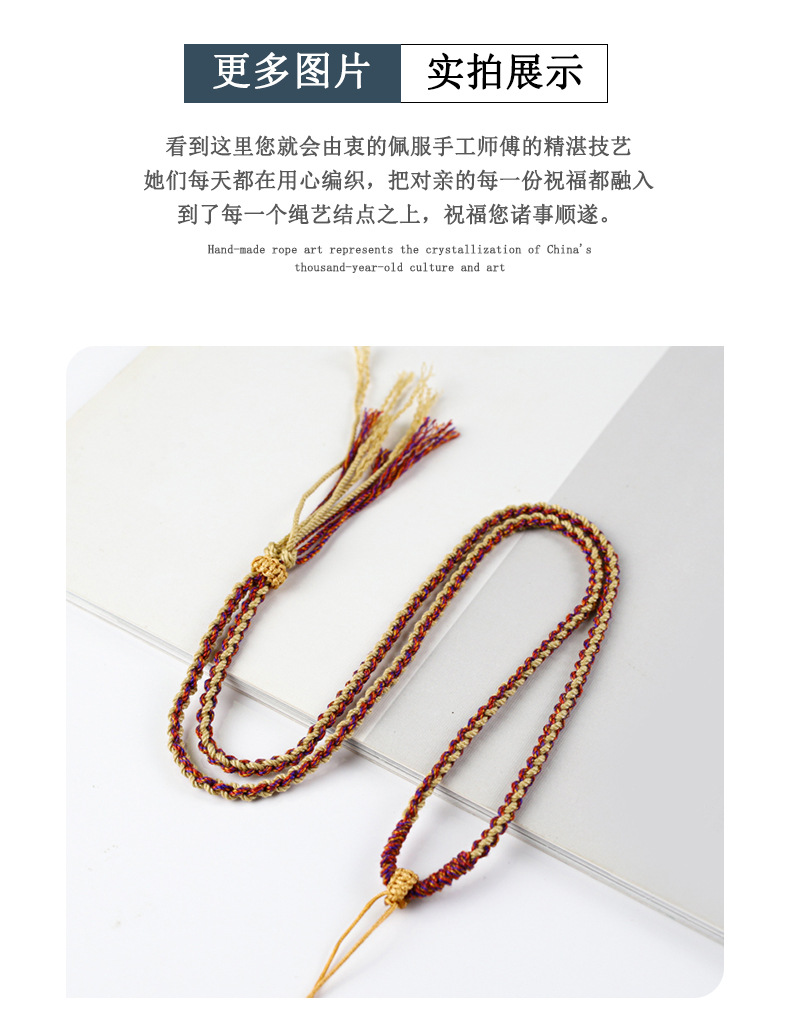 手織りのネックレスロープ男女翡翠玉佩金アクセサリーはペンダントのストラップを調節できます。