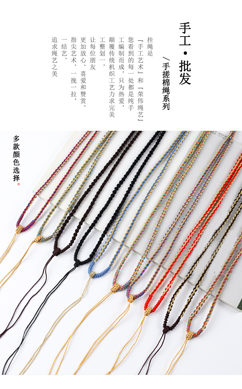 ペンダントのストラップの多色のストラップの男女は翡翠玉佩の黄金のアクセサリーの編み物のストラップのメーカーの卸売りを調節することができます。