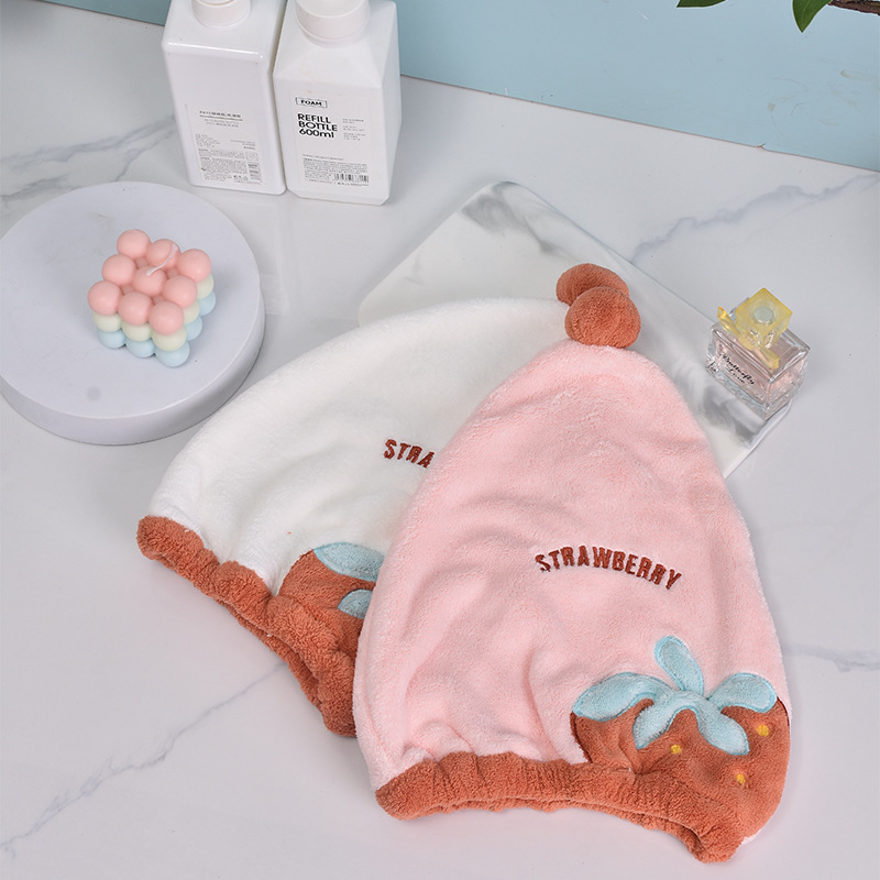 かわいい少女の心のイチゴの髪の帽子はとても吸水して速く乾いて厚い新型の頭巾を包んで髪の毛のタオルのシャワーの帽子を拭きます。
