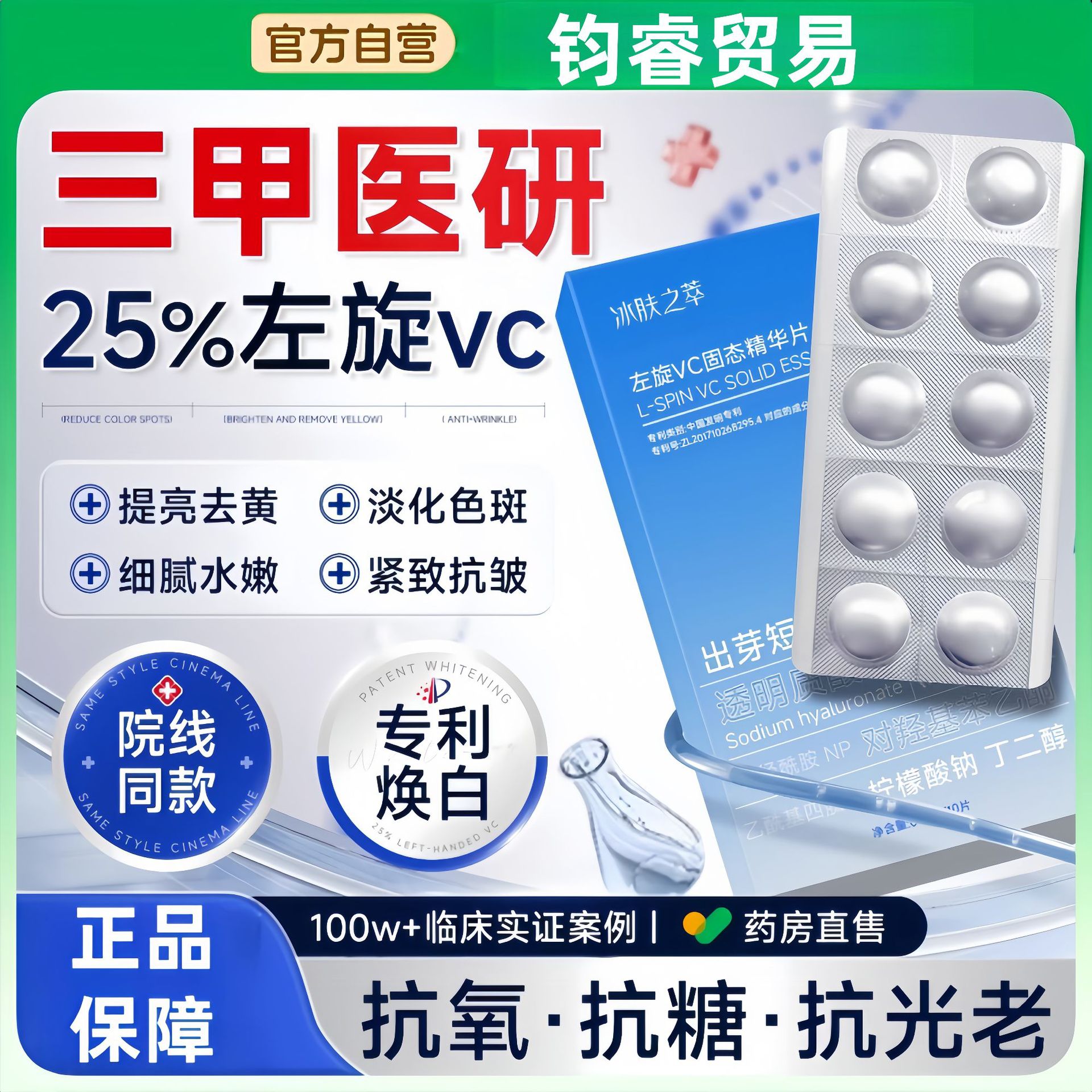 左旋维vc固态精华片液冻干提亮淡黄美改善暗沉白肤色旗舰店正品
