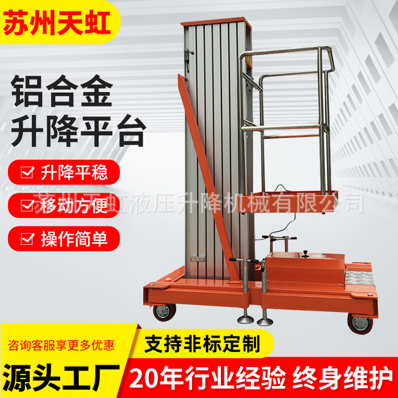 メーカーは江蘇省の家庭用昇降装置、アルミニウム合金モノレール油圧昇降プラットフォーム、高所リフトをカスタマイズしました。