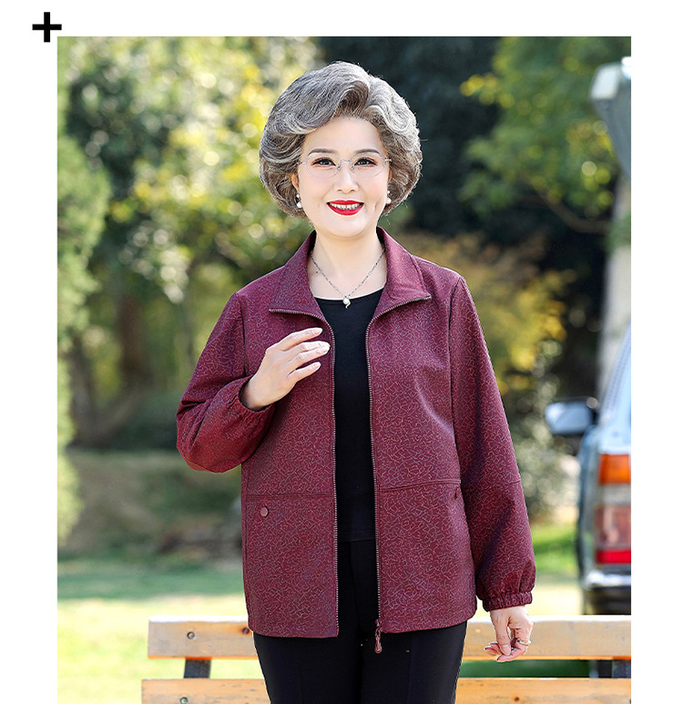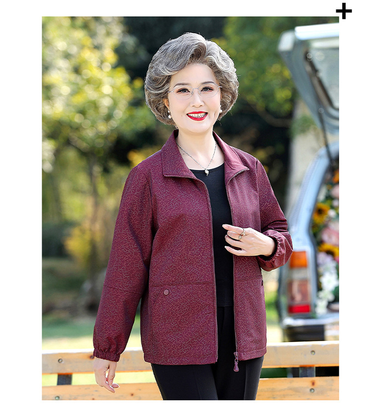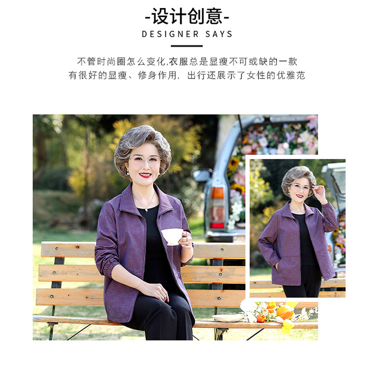 お年寄りの春の服の女性の薄いコートは60歳70歳です。