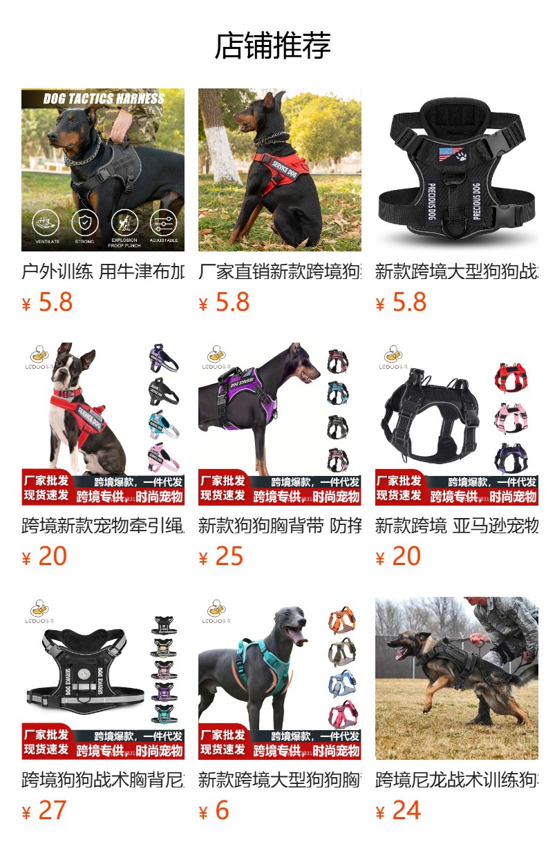 亚马逊战术胸背狗狗胸背中大型犬防爆冲防挣脱背心式胸背北美热销
