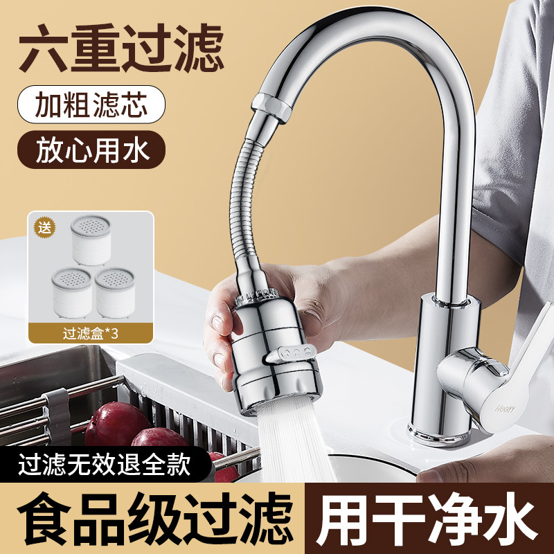 水龙头防溅头加长延伸净水器厨房自来水花洒节水可旋转过滤滤芯