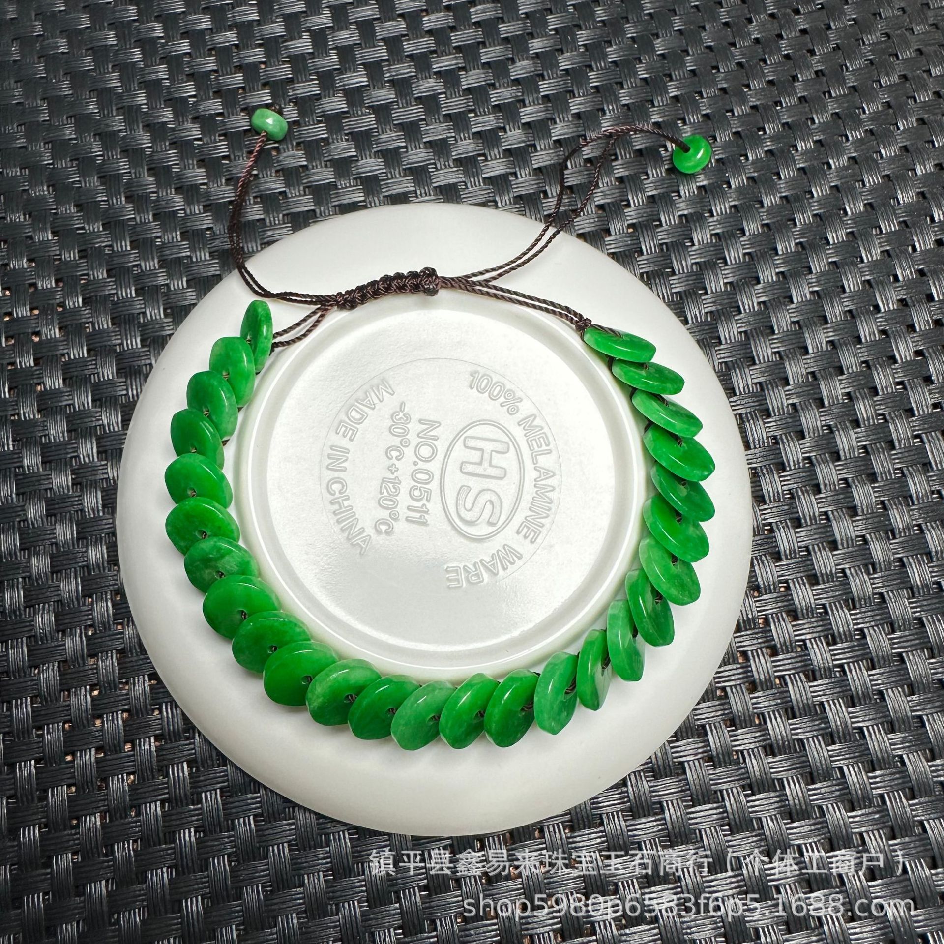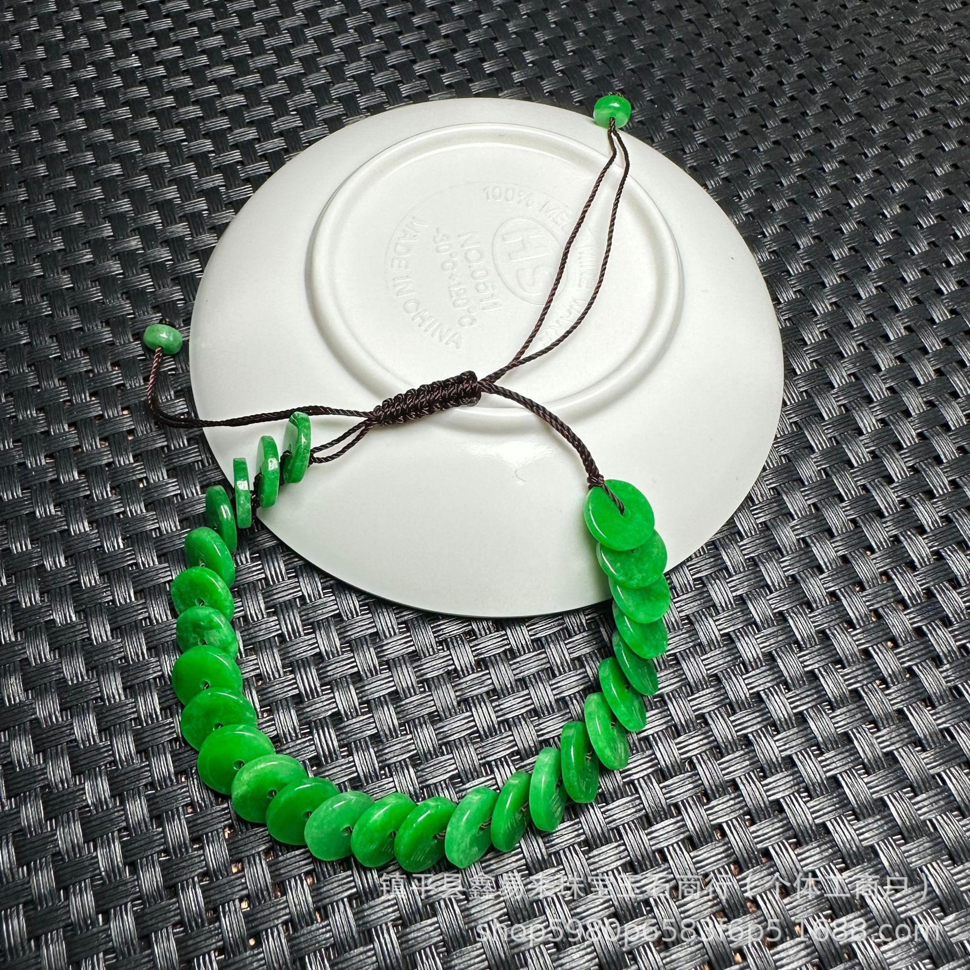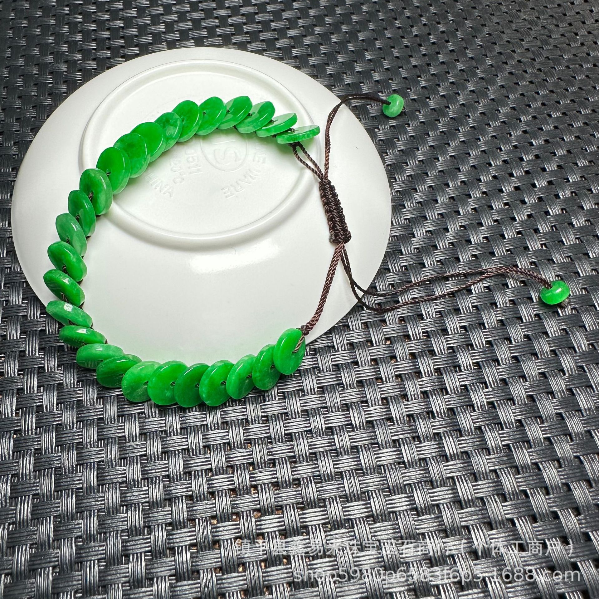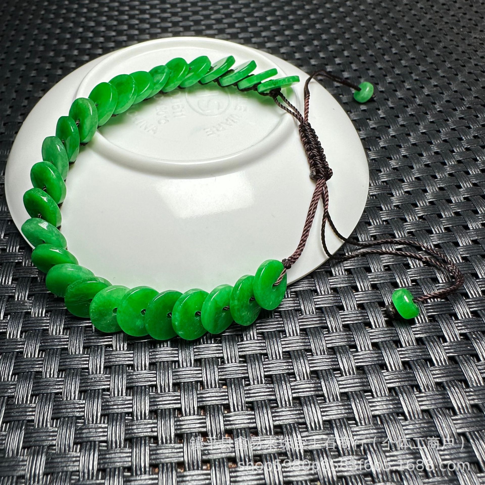 翡翠乾青10mm銭串子純手編み完成品ブレスレット玉製品祖母緑平安ボタン