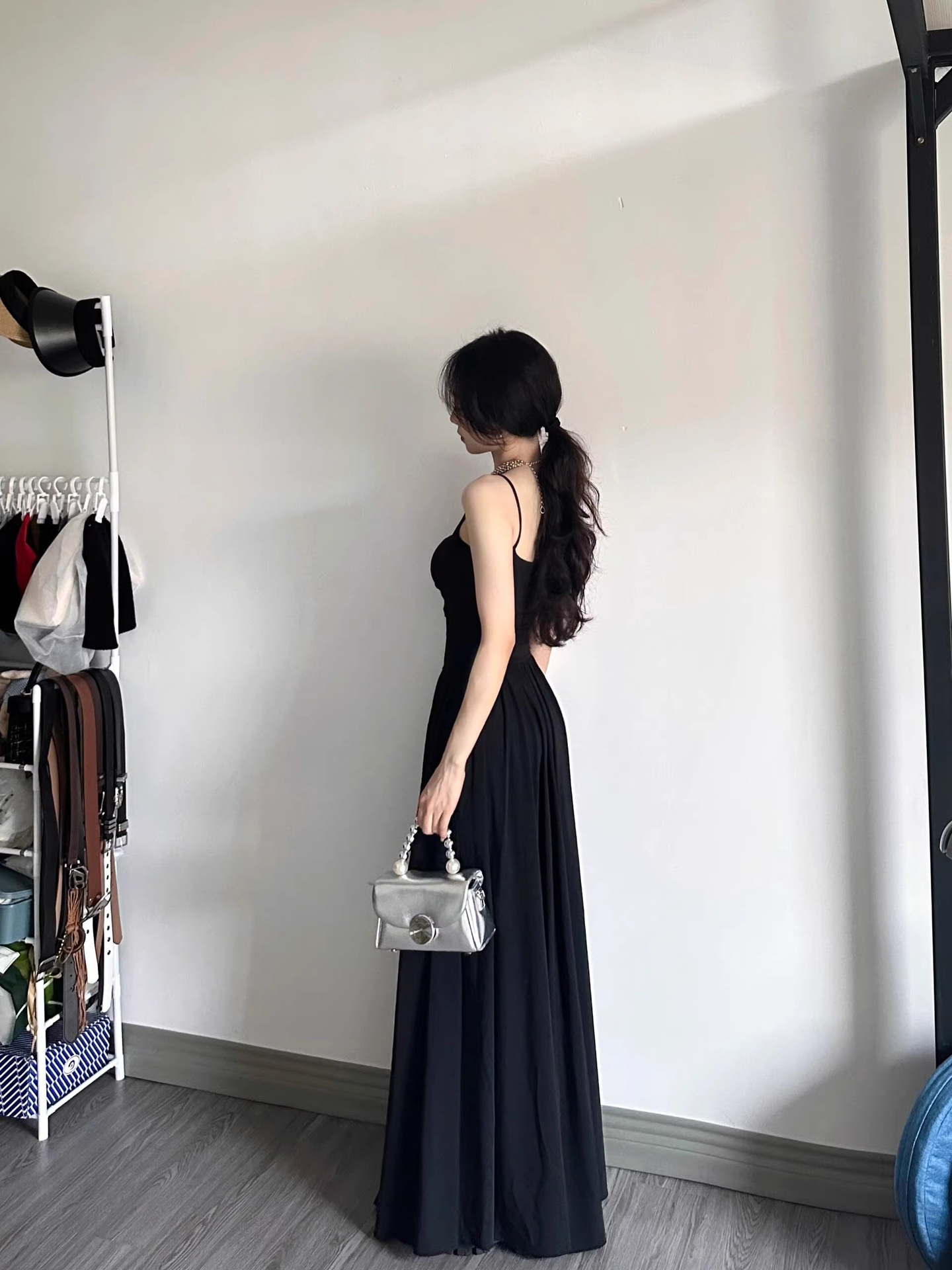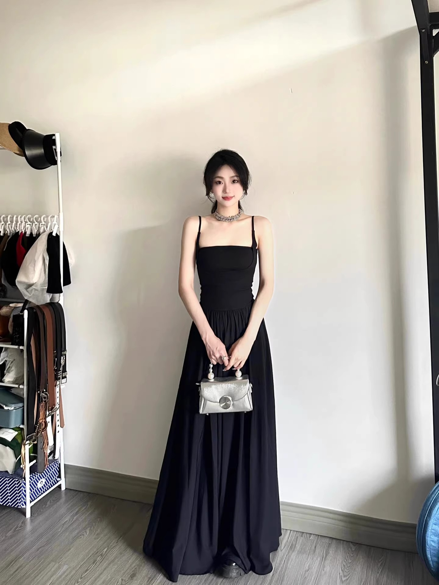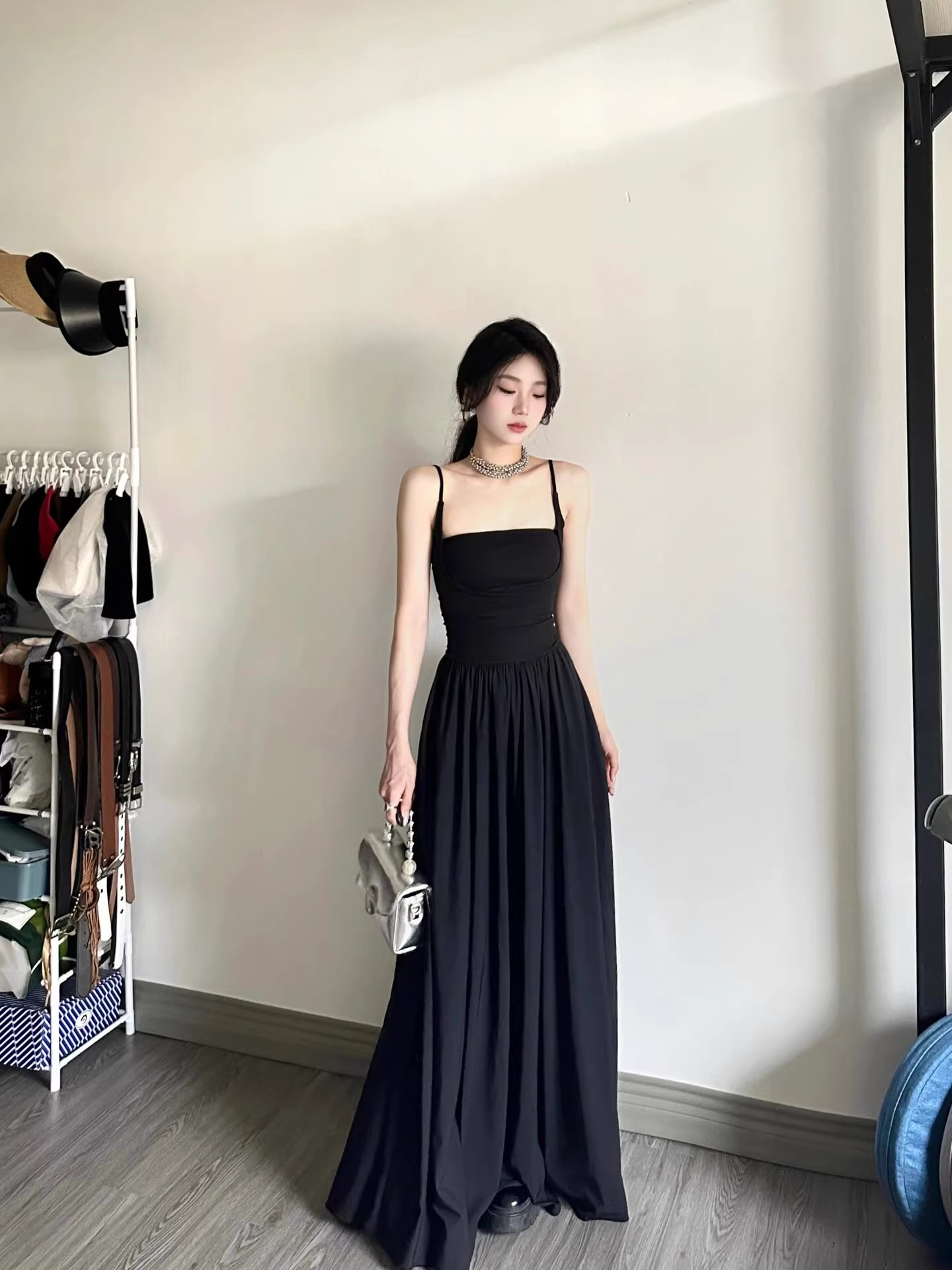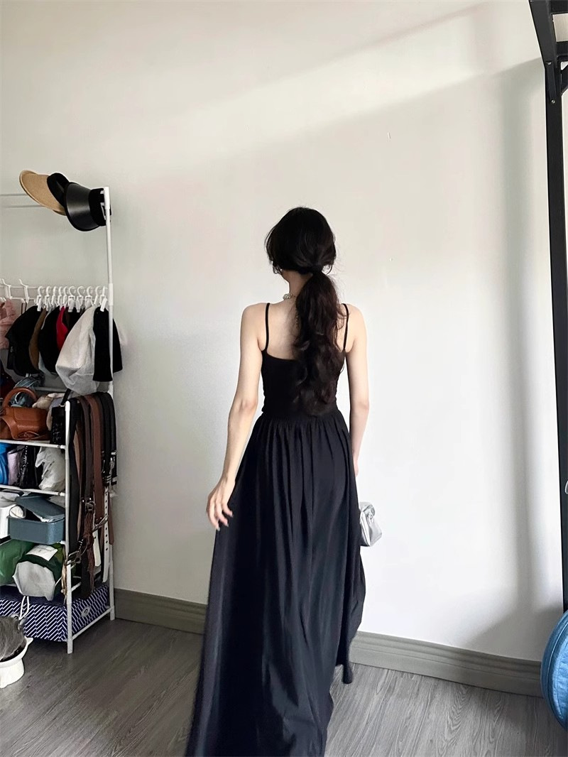 ストラップの底の小さい黒いスカートの韓国版は胸の気質を拭いて腰の長いスカートの夏の新型の純色の大きい振り子のa字のワンピースを収めます。