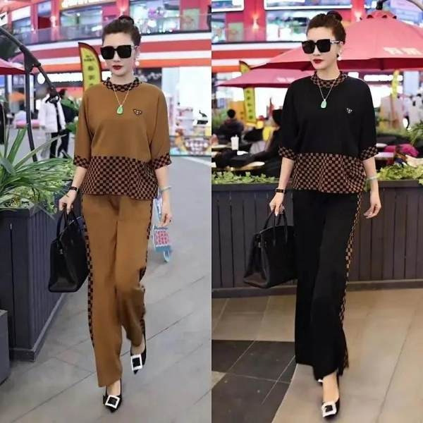 ファッションのお母さんのスーツのヨーロッパの商品は格子をつなぎ合わせてゆったりしていて、やせています。