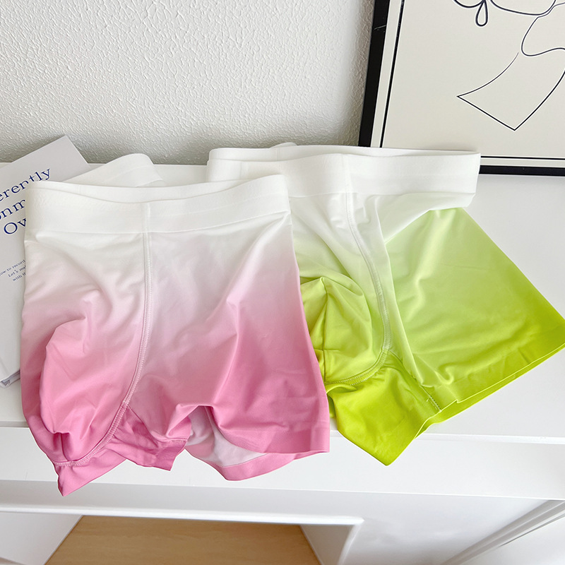 夏の新型グラデーション色の氷糸の男性の下着の跡がない氷感の平角の下着の男性の潮流のファッションの青年のズボンの頭