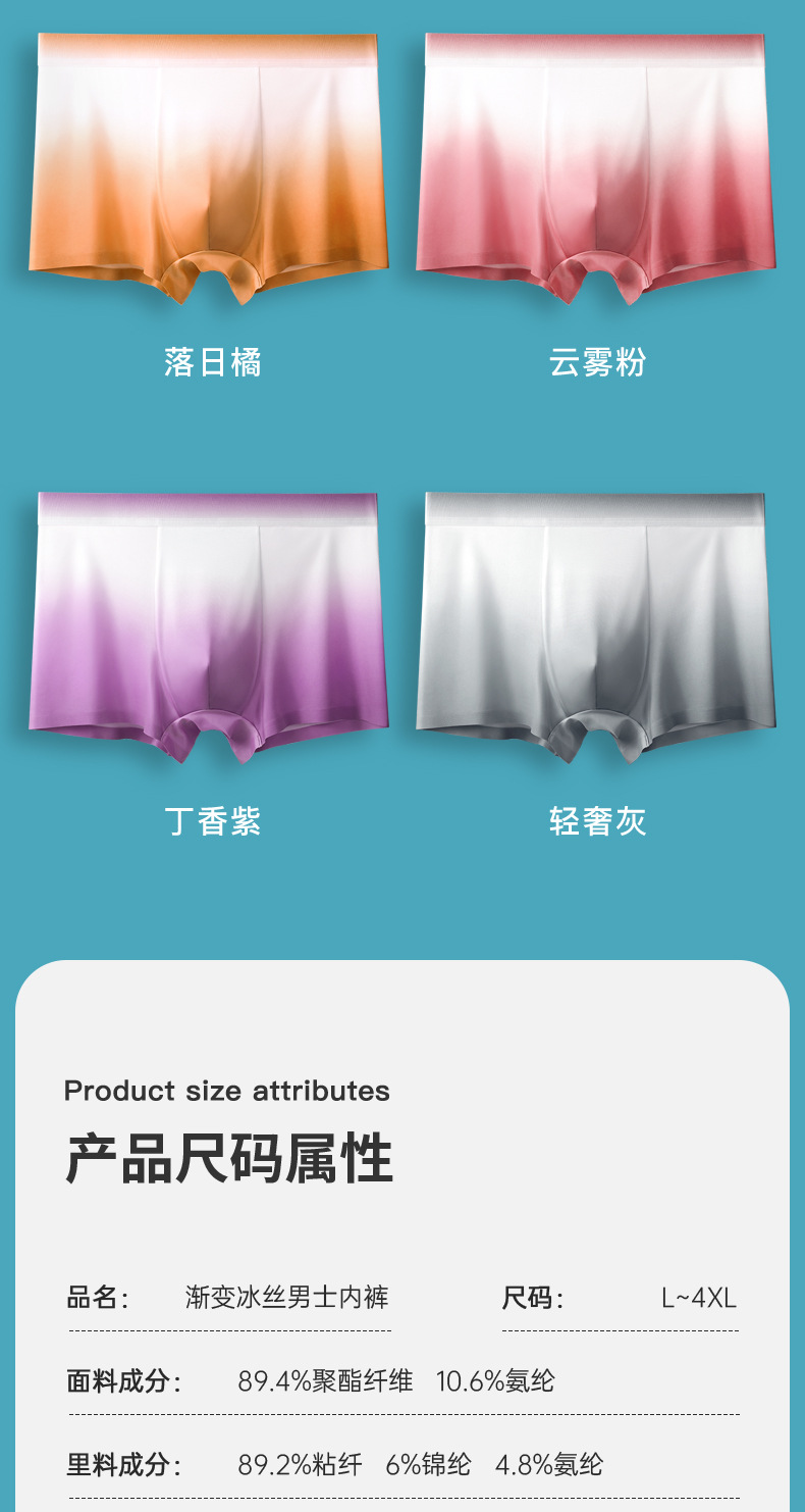 男性下着グラデーション氷糸平角ズボンメーカー卸売り代発抗菌速乾ズボン四角ズボン男子