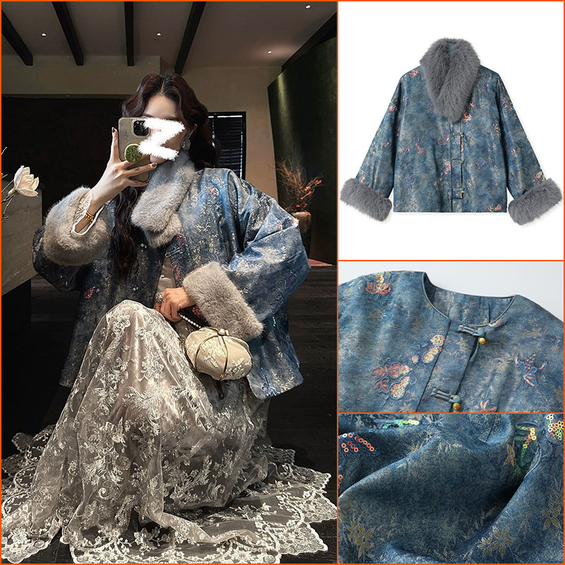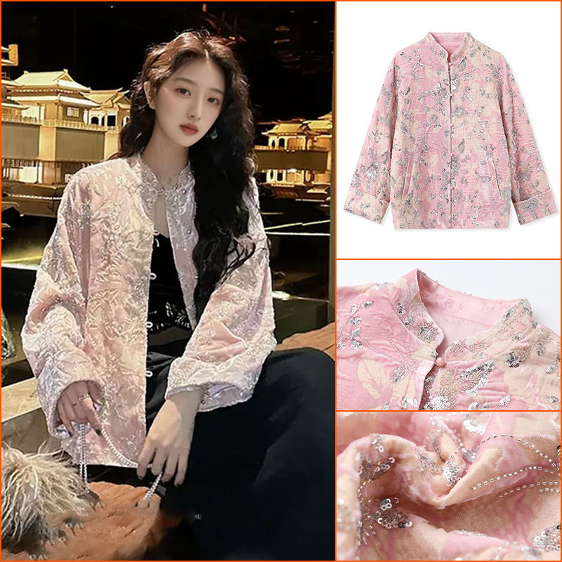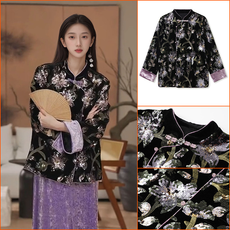 秋冬2025新型国風新中国式優雅気質高級スパンコール刺繍長袖コート綿服MY054