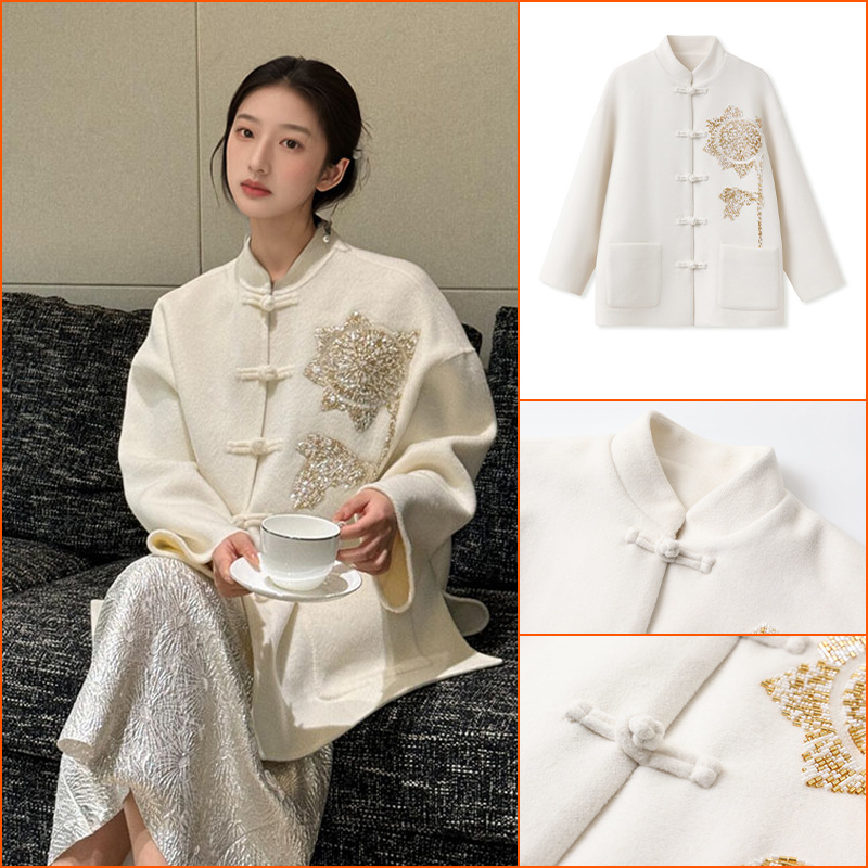 新中式秋冬2025新作 重厚なビーズ刺繍デザインのボタン付き軽贅沢国民風ジャケット ZX型 MY099