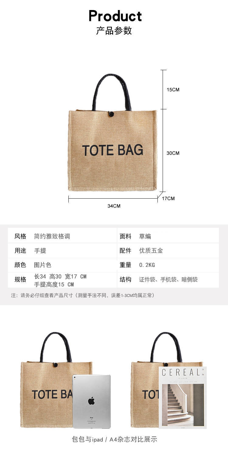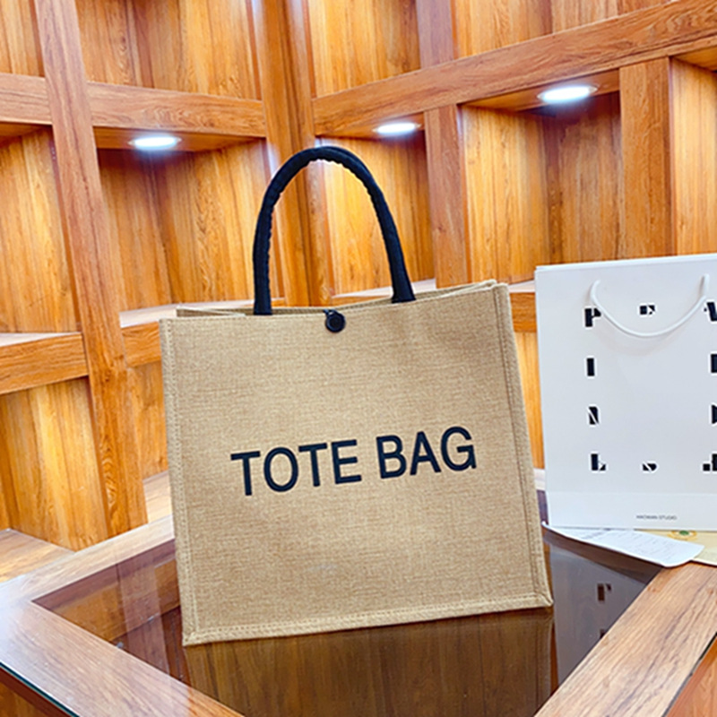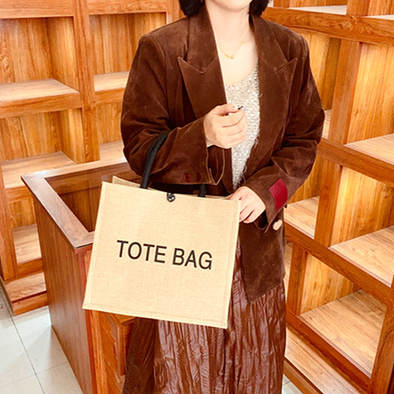 麻布包包手提包新款简约字母托特包单肩斜挎通勤麻布手提袋礼物包