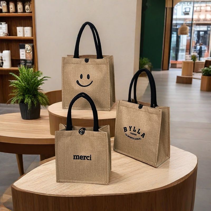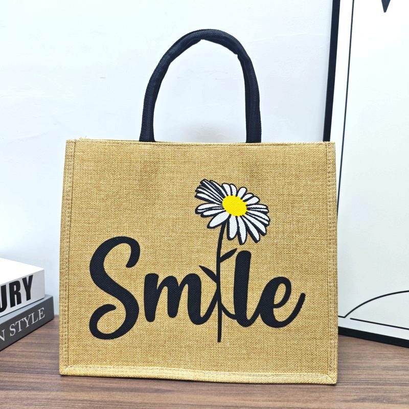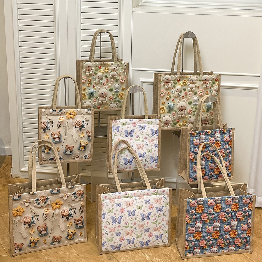 リネンハンドバッグ、リネンバッグ、クロスボーダーファッションプリントジュートバッグ、環境に優しいショッピングバッグ、厚みのある通勤女性用バッグ