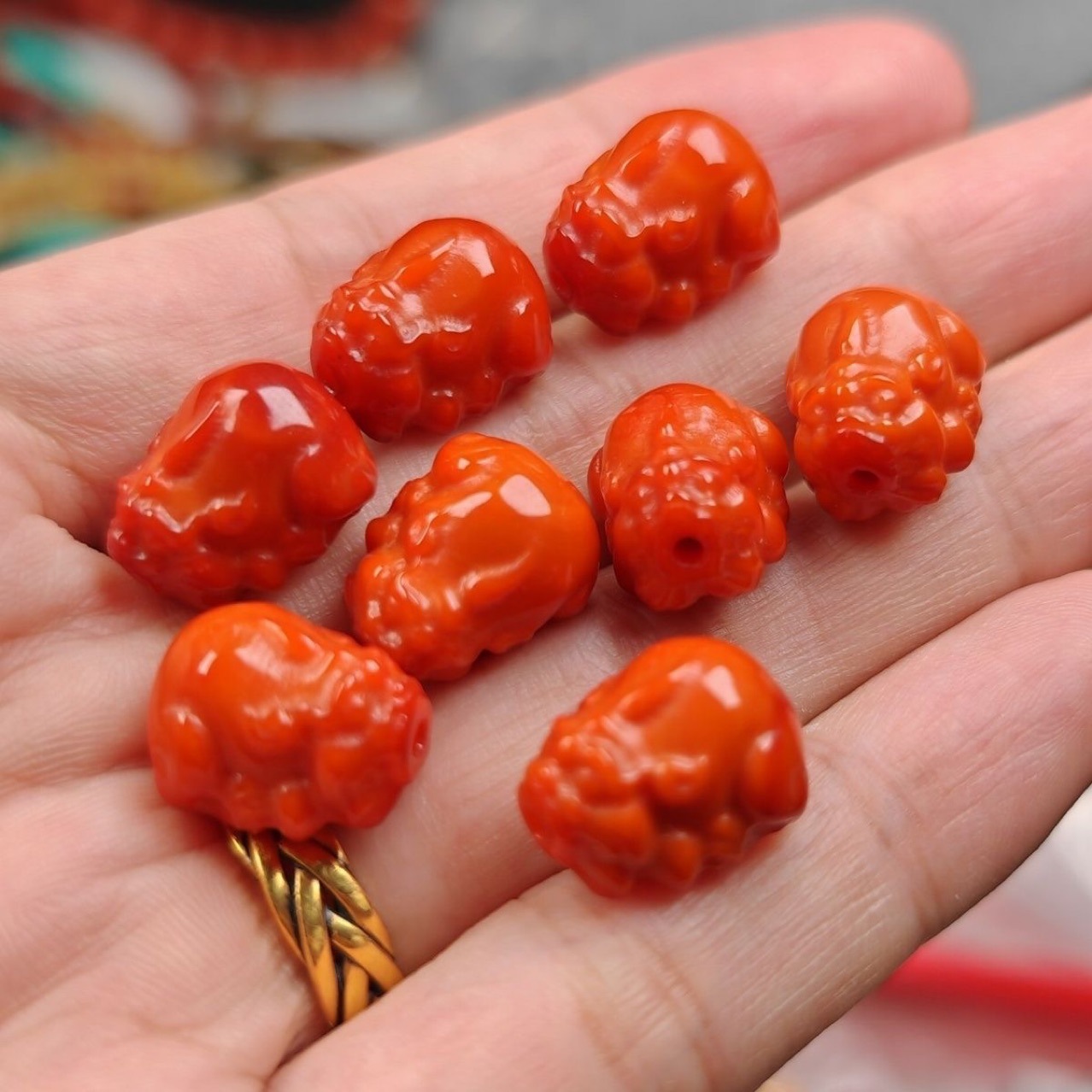 瓦西料南红貔貅立体雕通孔貔貅顶珠配饰108文玩配珠背云侧挂