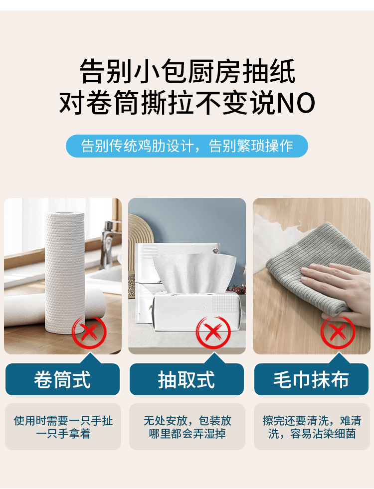 キッチン用使い捨て雑巾、糸くずが出ない、強力吸水、キッチン専用ペーパータオル、引き出し式、乾湿両用、便利な雑巾