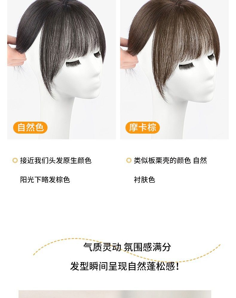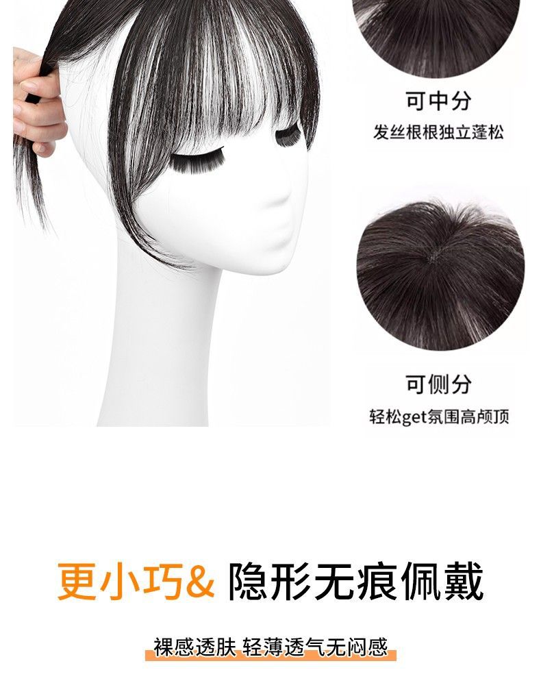 手織り3Dフレンチバングウィッグ、頭頂部分の交換用ウィッグ、シームレスな増毛エアウィッグ、顔の整形用ウィッグ