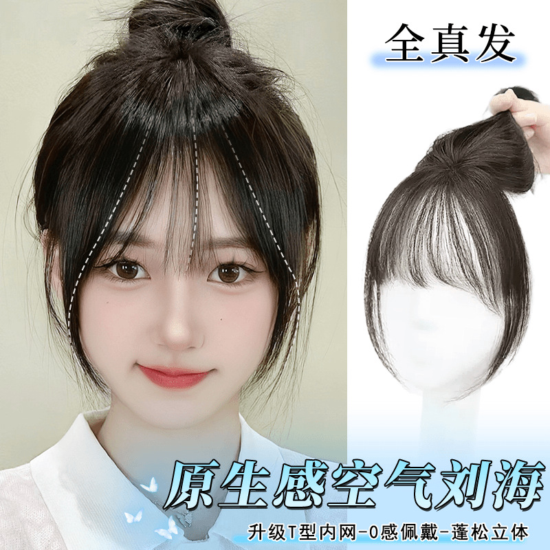 かつらの女性の空気の前髪の全真の髪の額はふわふわしています。