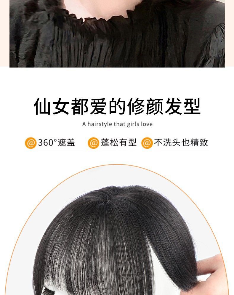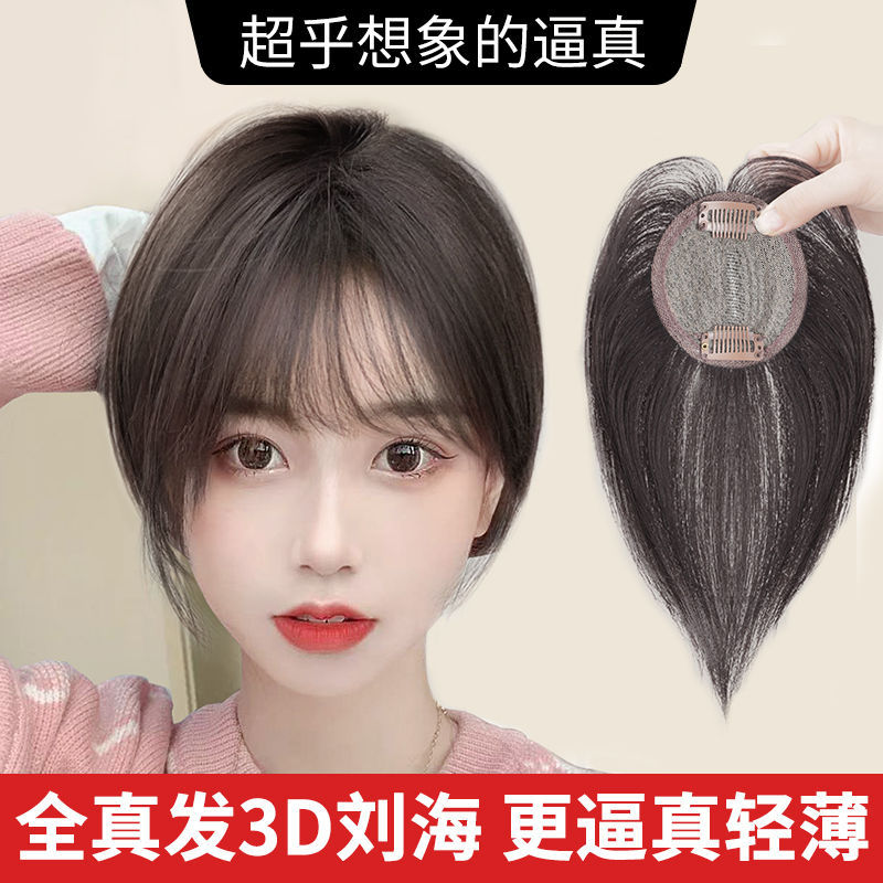 3D前髪ウィッグ、頭頂部ヘアピース、本物の髪、ふわふわショートヘア、白髪カバーヘアピース、女性用ウィッグ、サマーバング