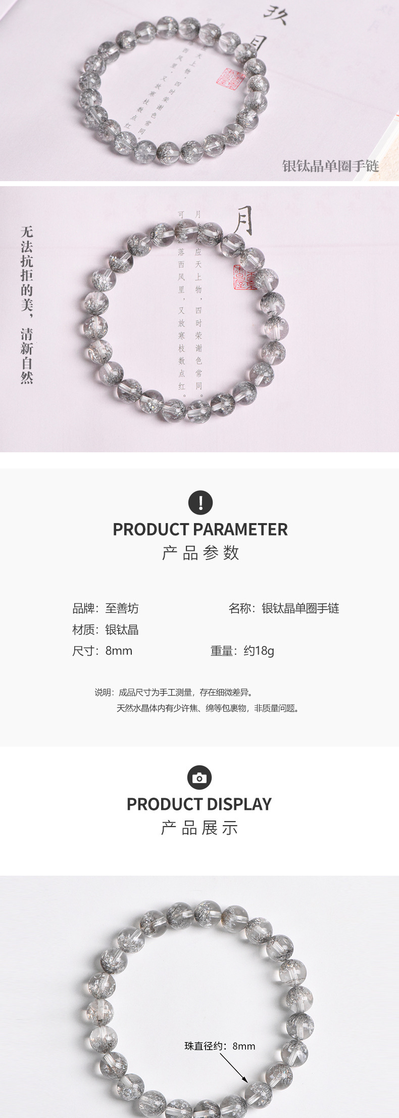 天然銀チタン8mmシングルブレスレット銀髪チタン結晶diyアクセサリー大衆デザイン金手串アクセサリー工場卸売り
