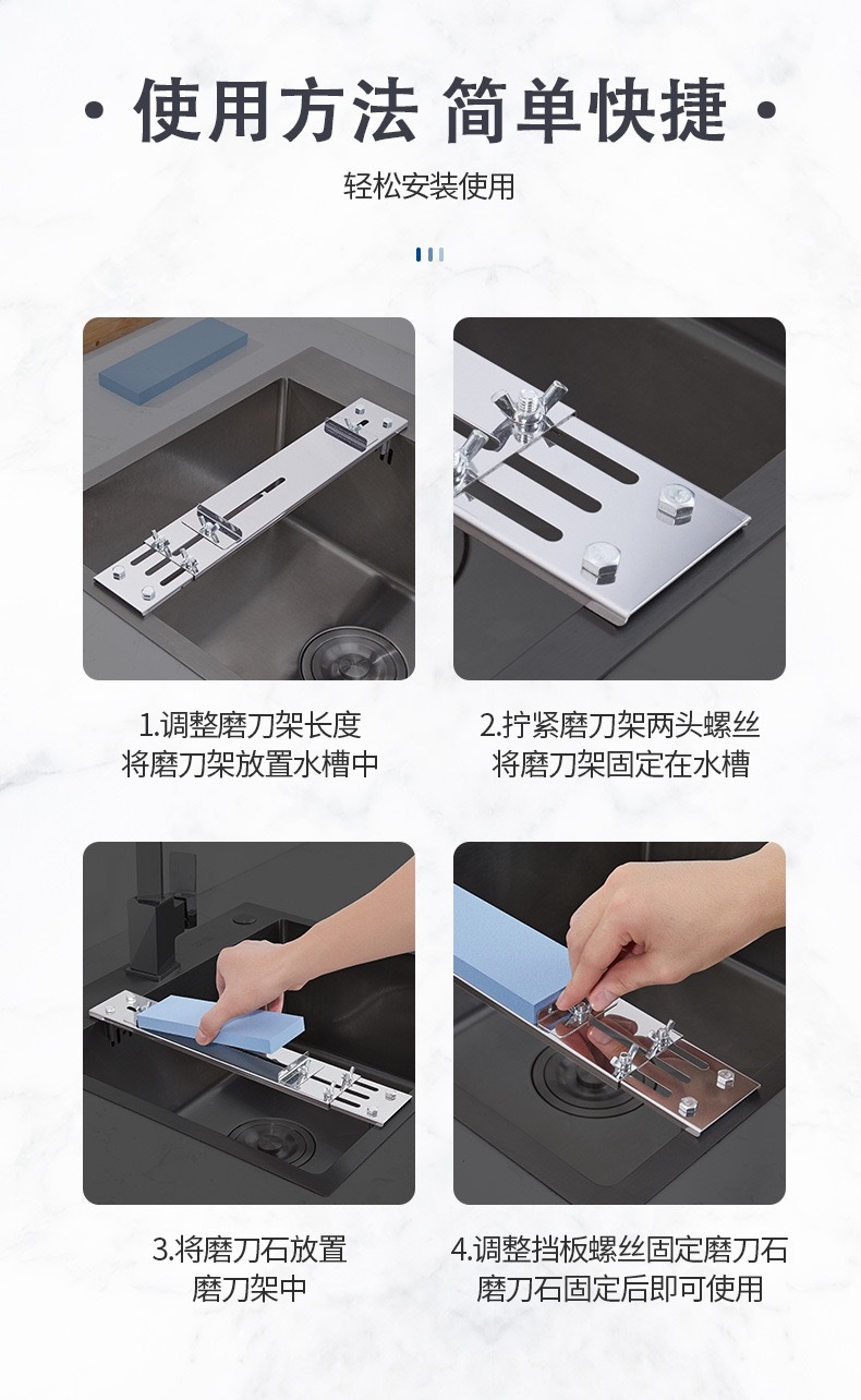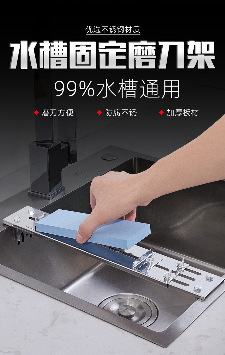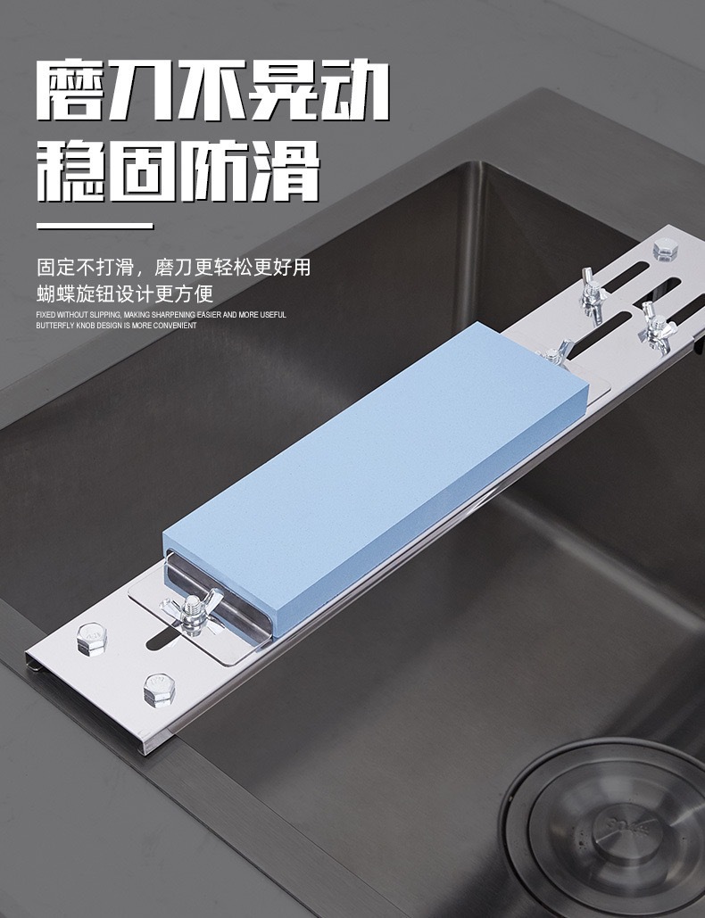 固定不锈钢水槽伸缩磨刀架 3000目白刚玉家用菜刀专用磨刀石工具