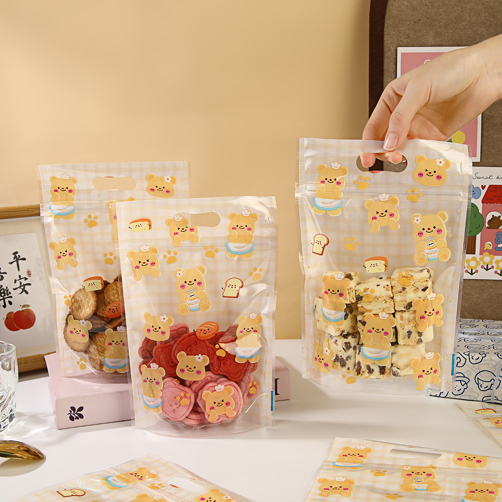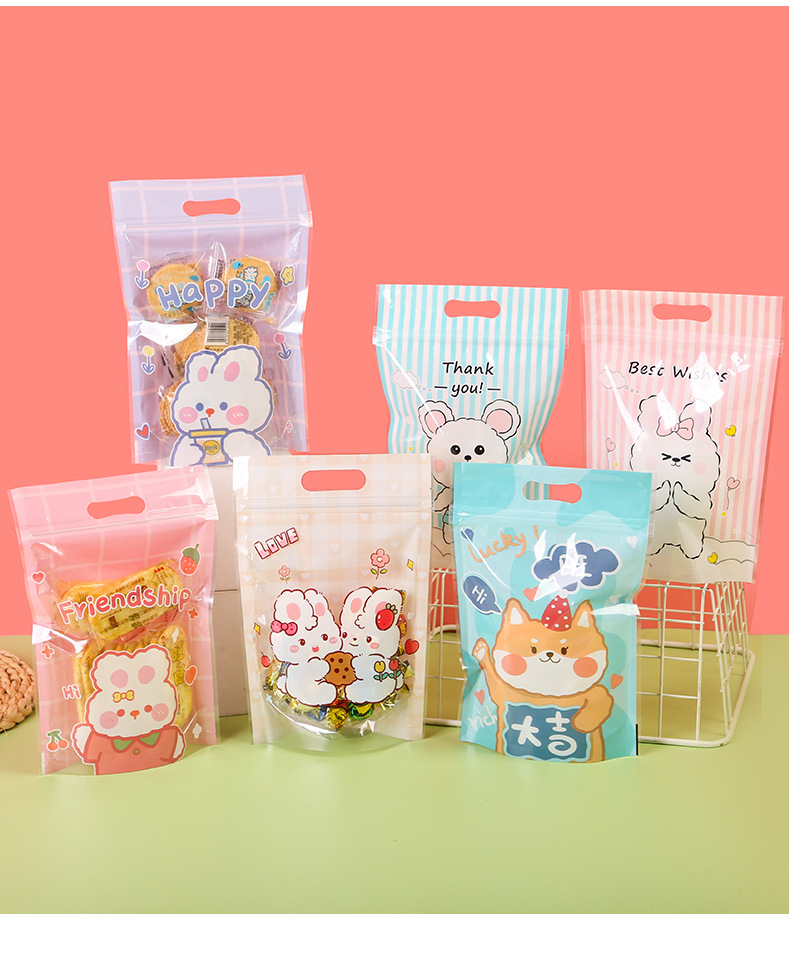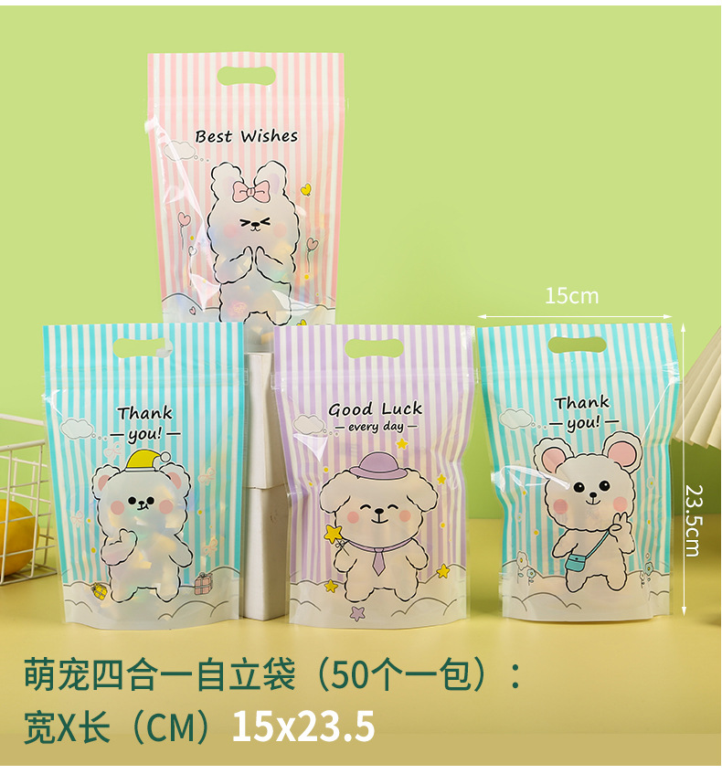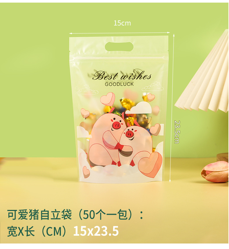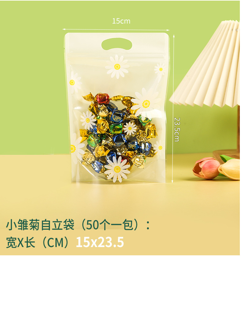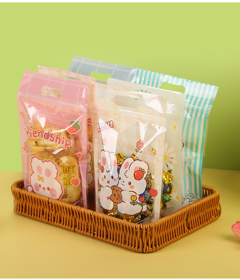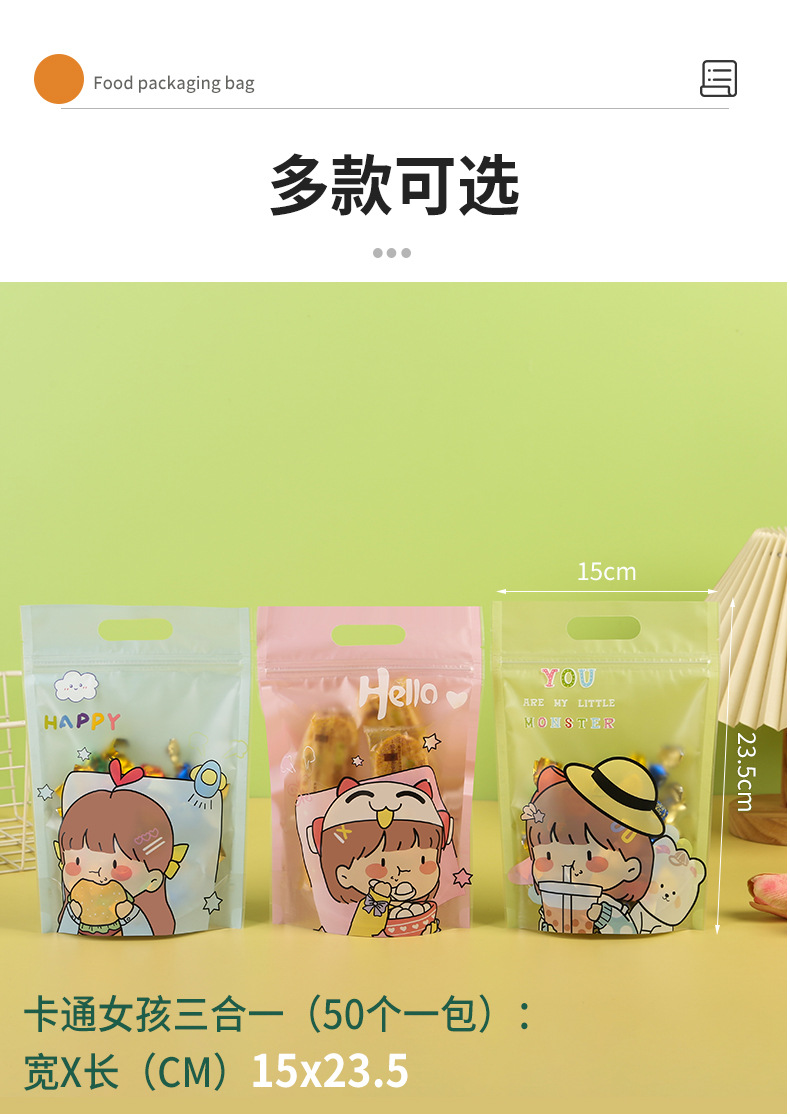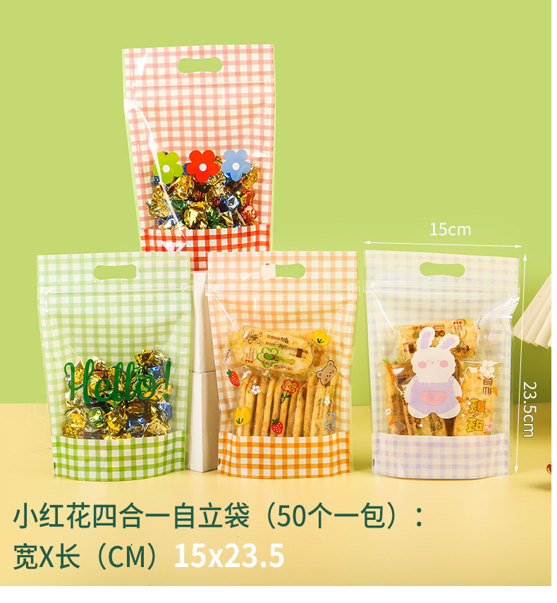 用途:内置自封条,手捏即封,可站立,装各种零食,饼干,糖果,干果等。