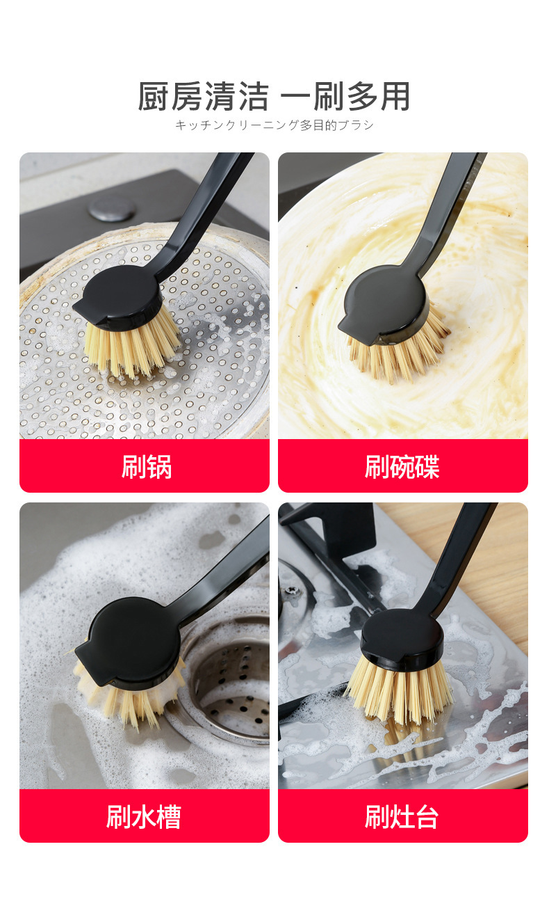 天然剑麻锅刷家用长柄洗碗洗锅木柄刷子厨房多功能清洁刷清洁神器