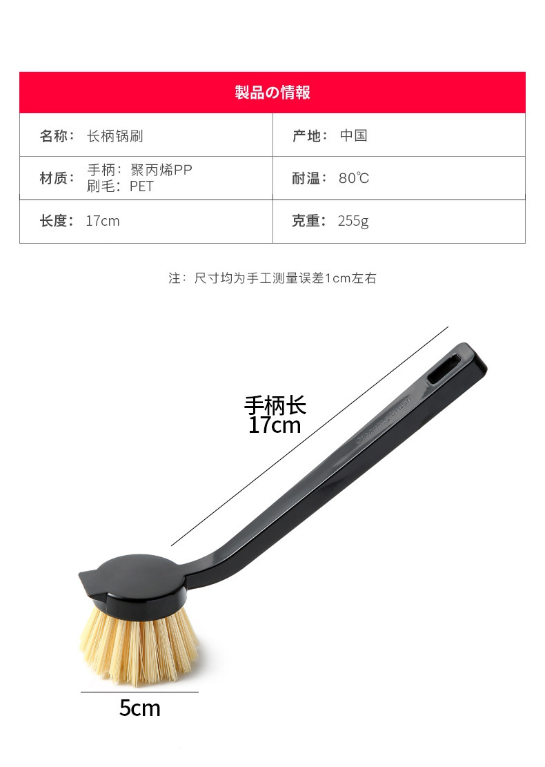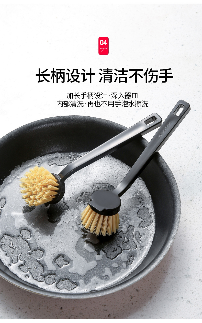 日本AISENブラシ鍋神器キッチン洗浄鍋ブラシ家庭用ココナッツブラウン油をつけない鍋プラスチックの長い柄の鍋ブラシ