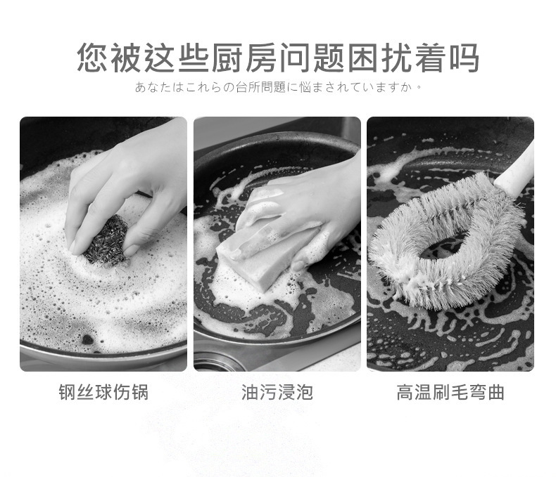 日本の鍋の神器のかまどのブラシの台所の鍋は家庭用の鍋をこすります。