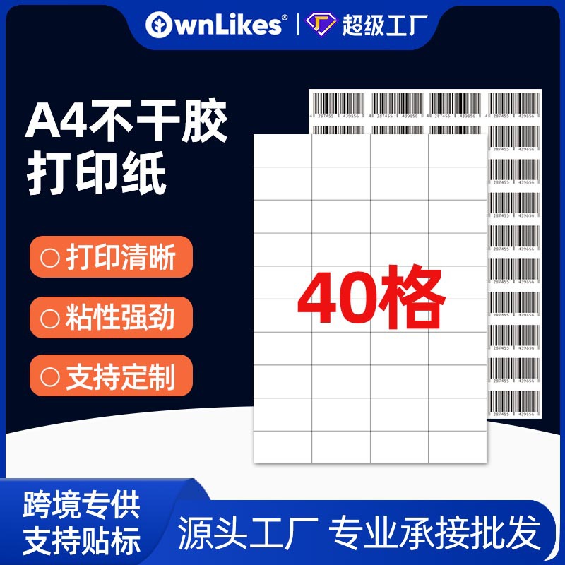 A4ステッカー印刷紙内切40格シールアマゾンfbaラベル紙ムース頭バーコードラベル紙レーザー