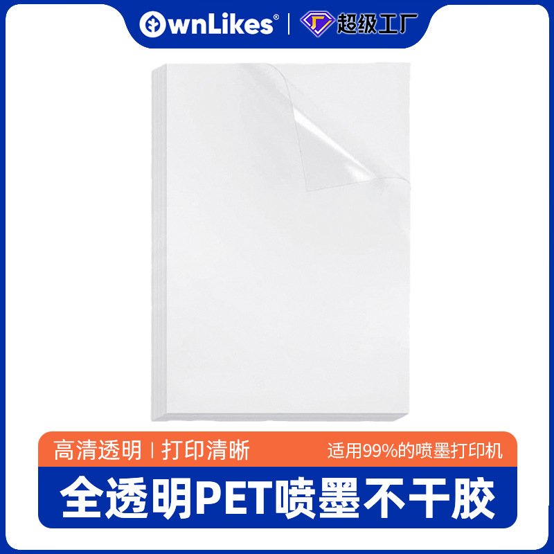 メーカーインクジェットpet透明ステッカー印刷紙は、a4自己接着印刷高透過ラベルシール卸売りを引き裂かない