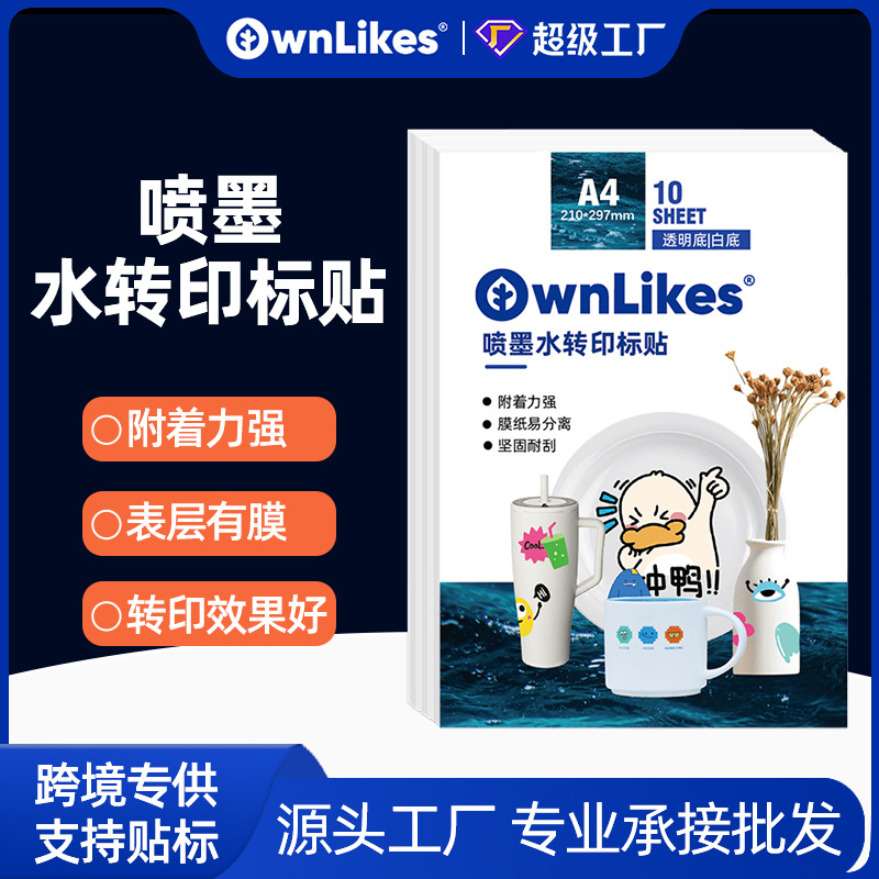 クロスボーダー専用インクジェットa4水転写紙ロゴプリント紙セラミックガラスマグカップ水シールスポット卸売り