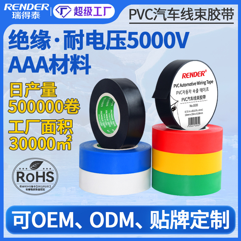 Oem電気テープ20メートル自動車ハーネス黒色超薄型pvc絶縁テープ輸出電気防水テープ