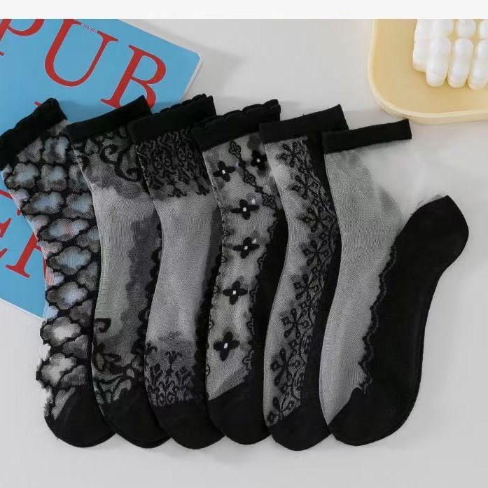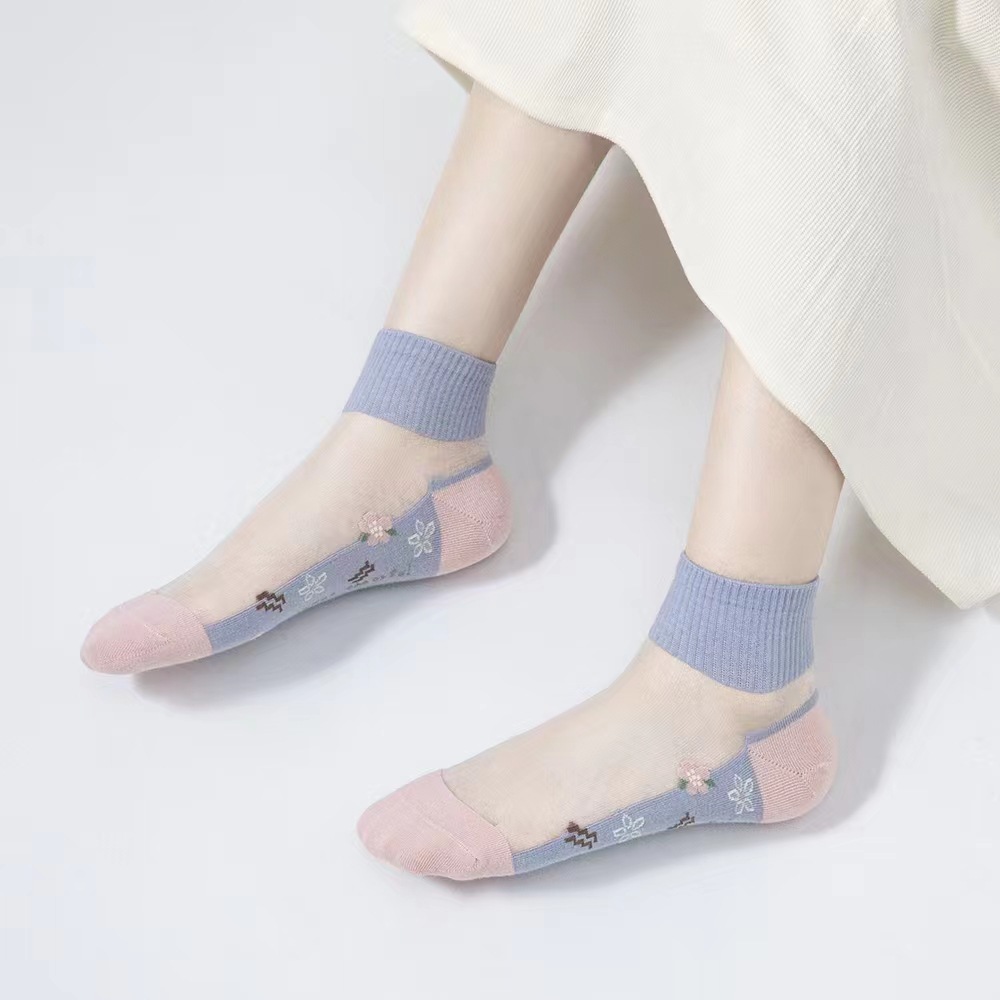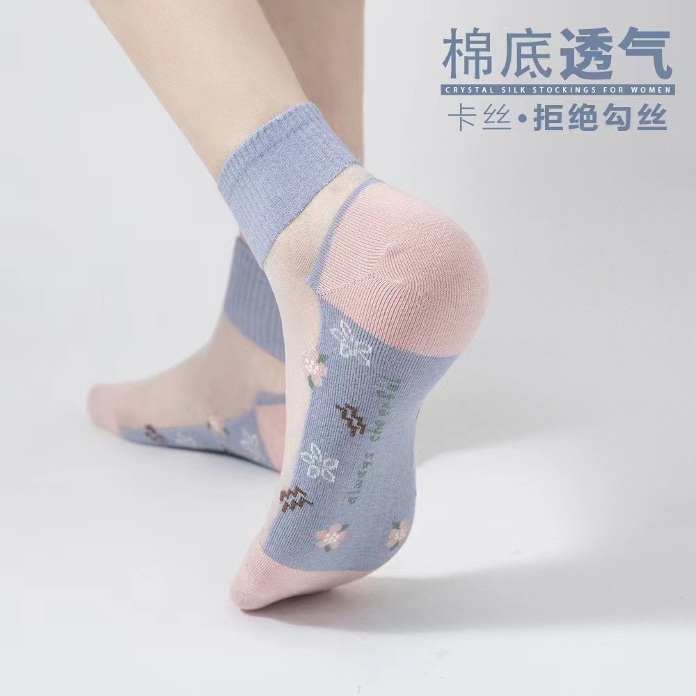 女性の夏の薄いタイプのストッキングのガラスのシルクの花の靴下の純色のシンプルな水晶の靴下の通気性の中でストッキング