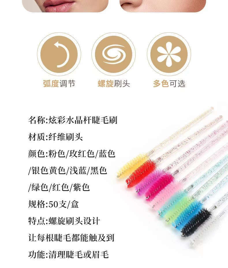 新しい水晶棒カラーまつ毛櫛まつ毛ブラシ眉櫛携帯まつ毛ブラシ多目的ブラシ50本一包