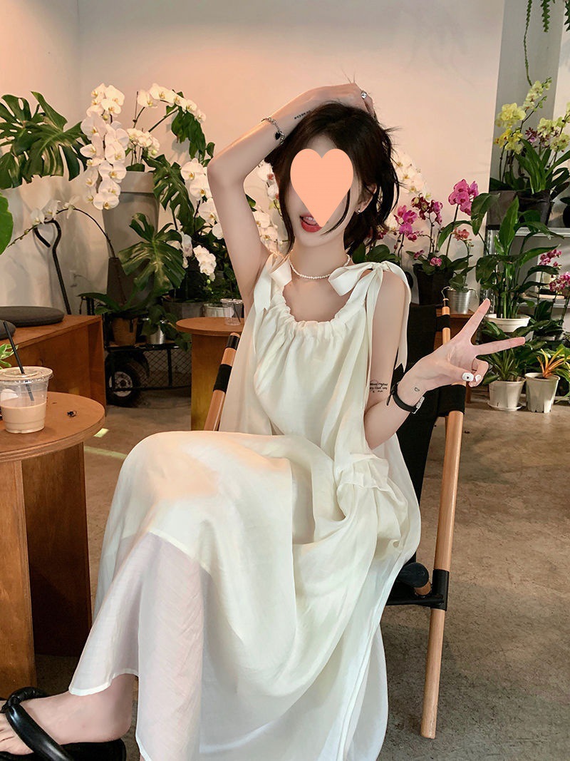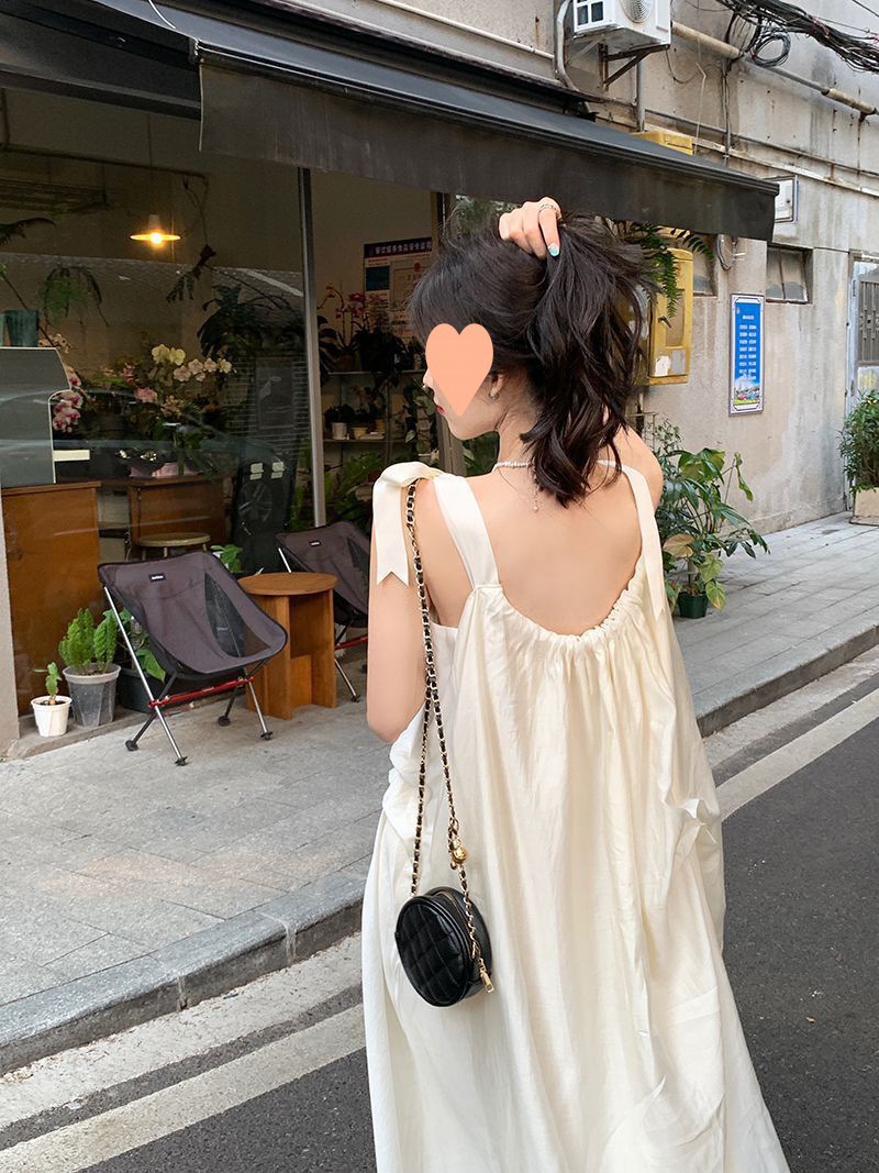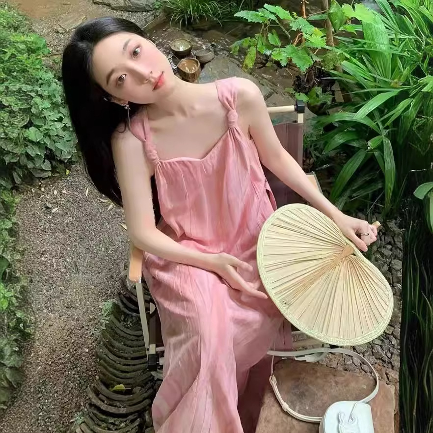 フランスの優しい怠惰なリゾート風のゆるいストラップワンピース女装夏2024デザイン感の中長スカート
