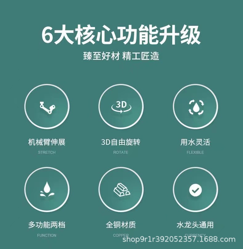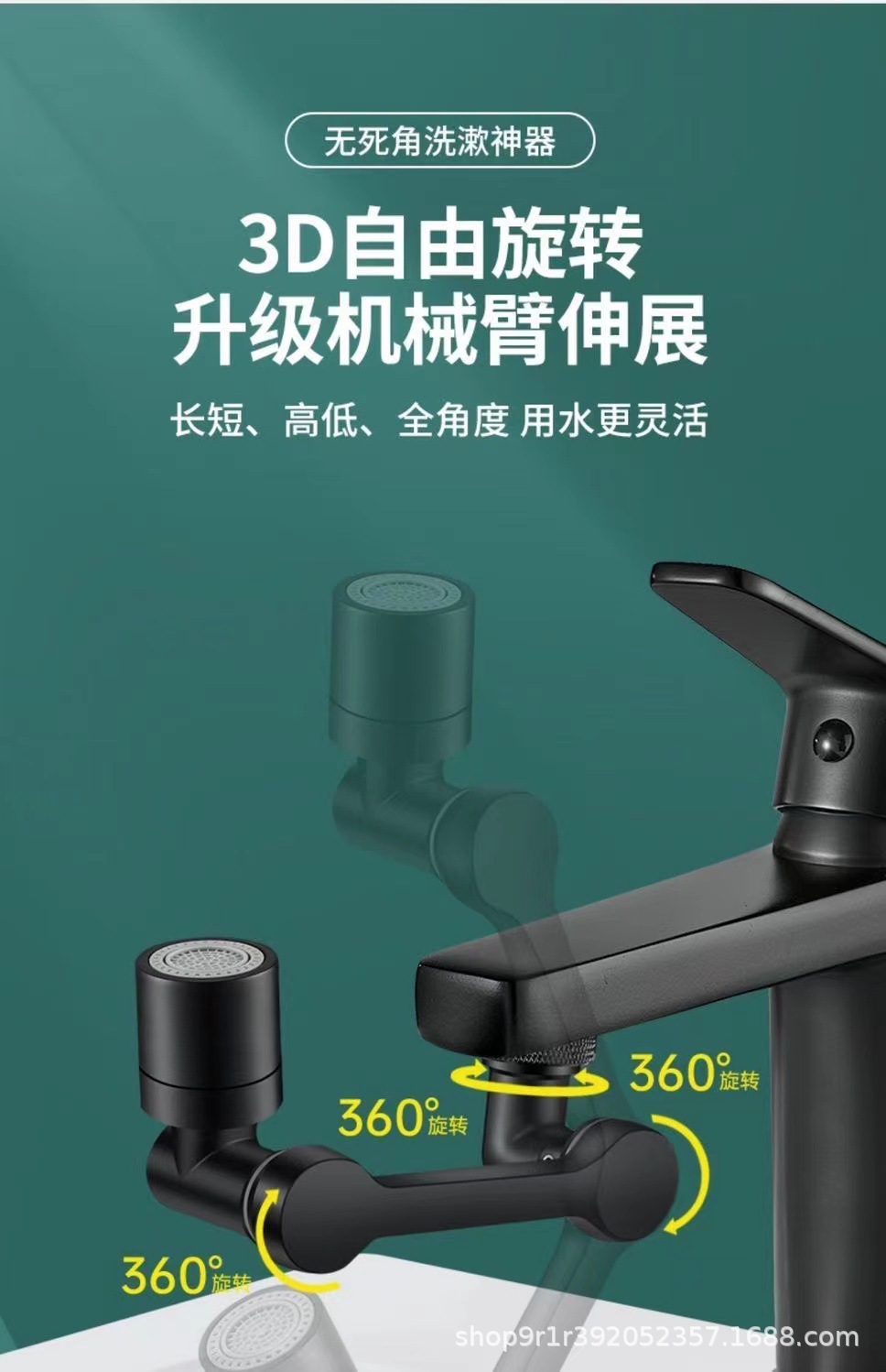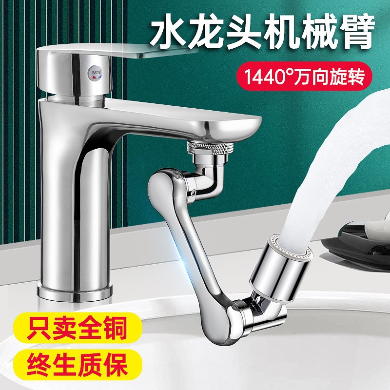 全铜机械臂万向水龙头延伸器可旋转水嘴洗脸盆多功能起泡防溅神器