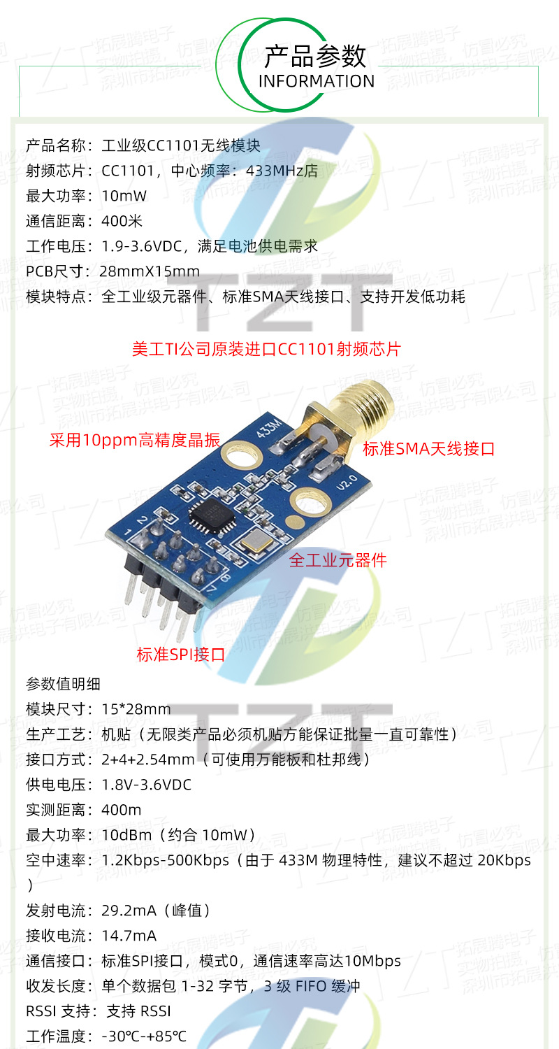 Cc1101無線モジュール433mデジタル送受信モジュールは、アンテナのゲインを大きくしてsma + ゴム棒アンテナを含む