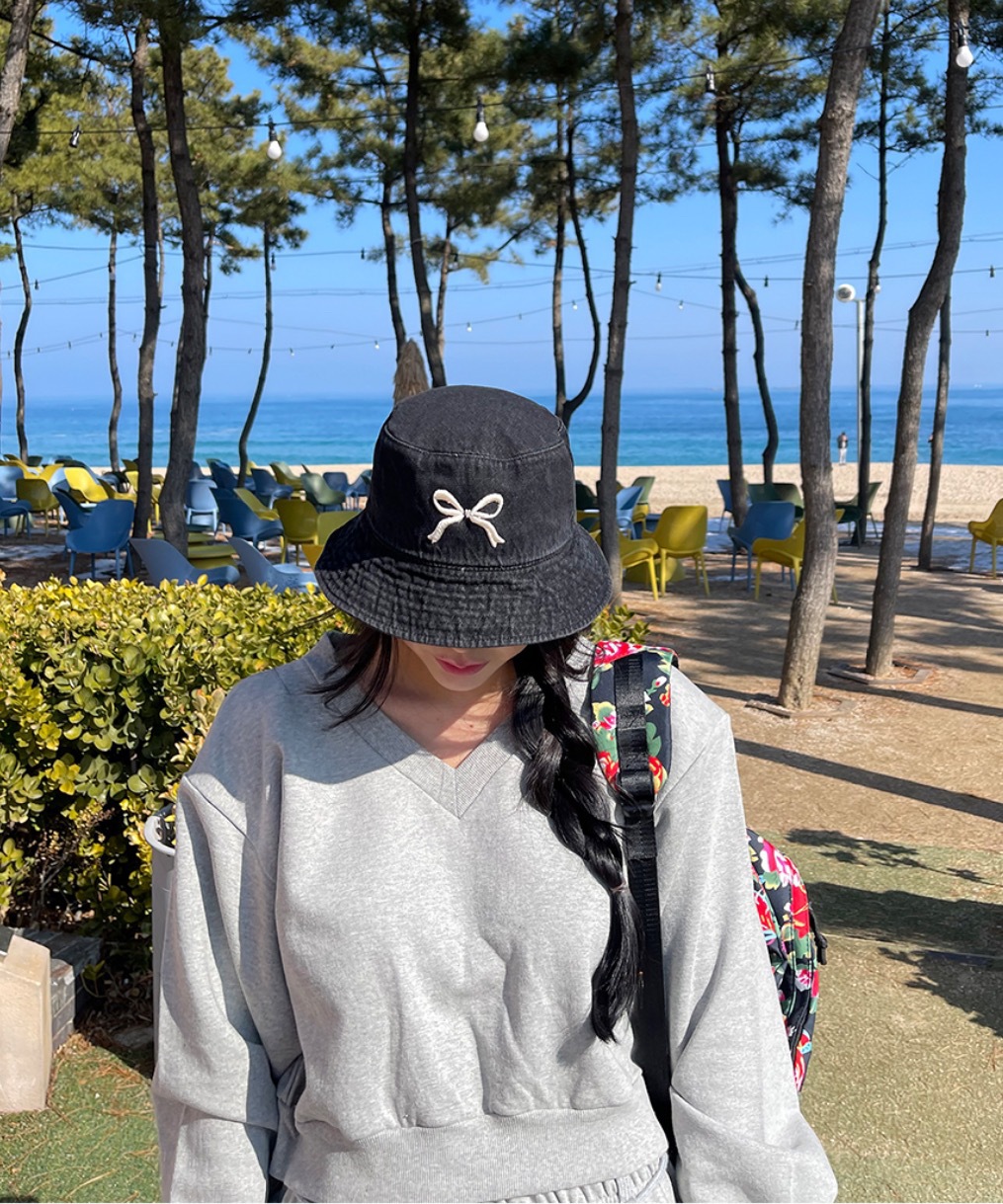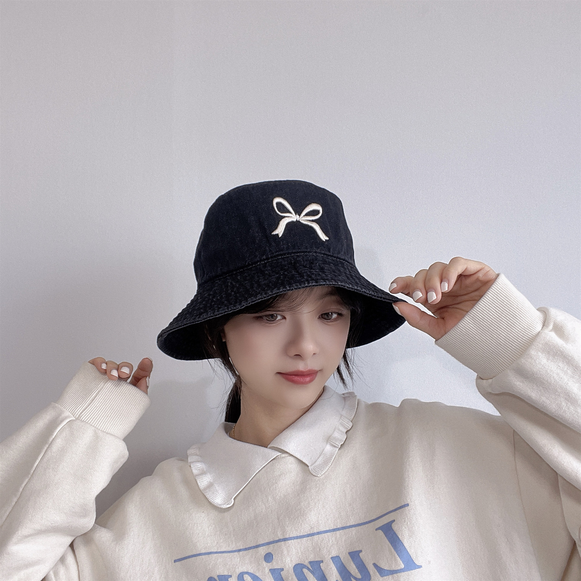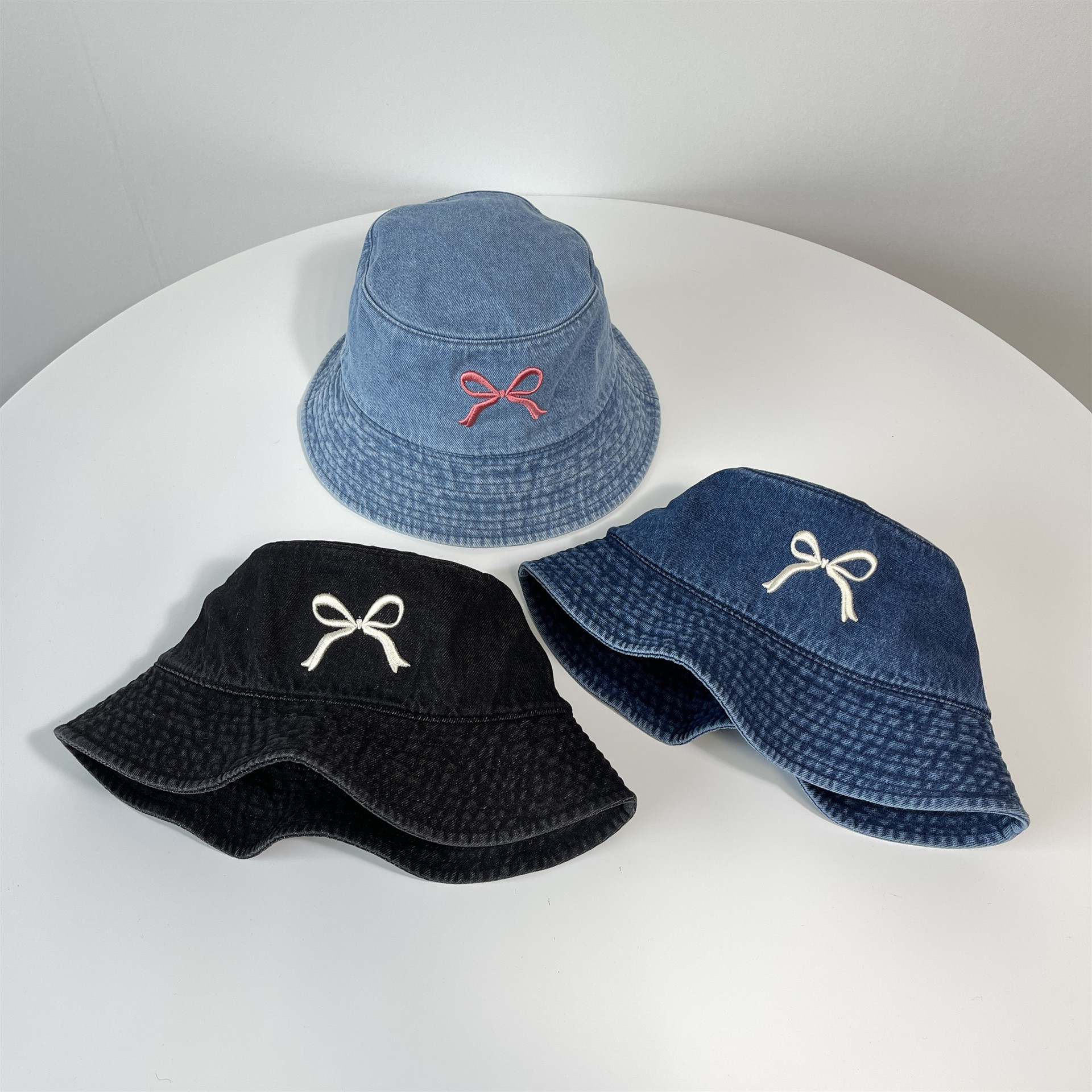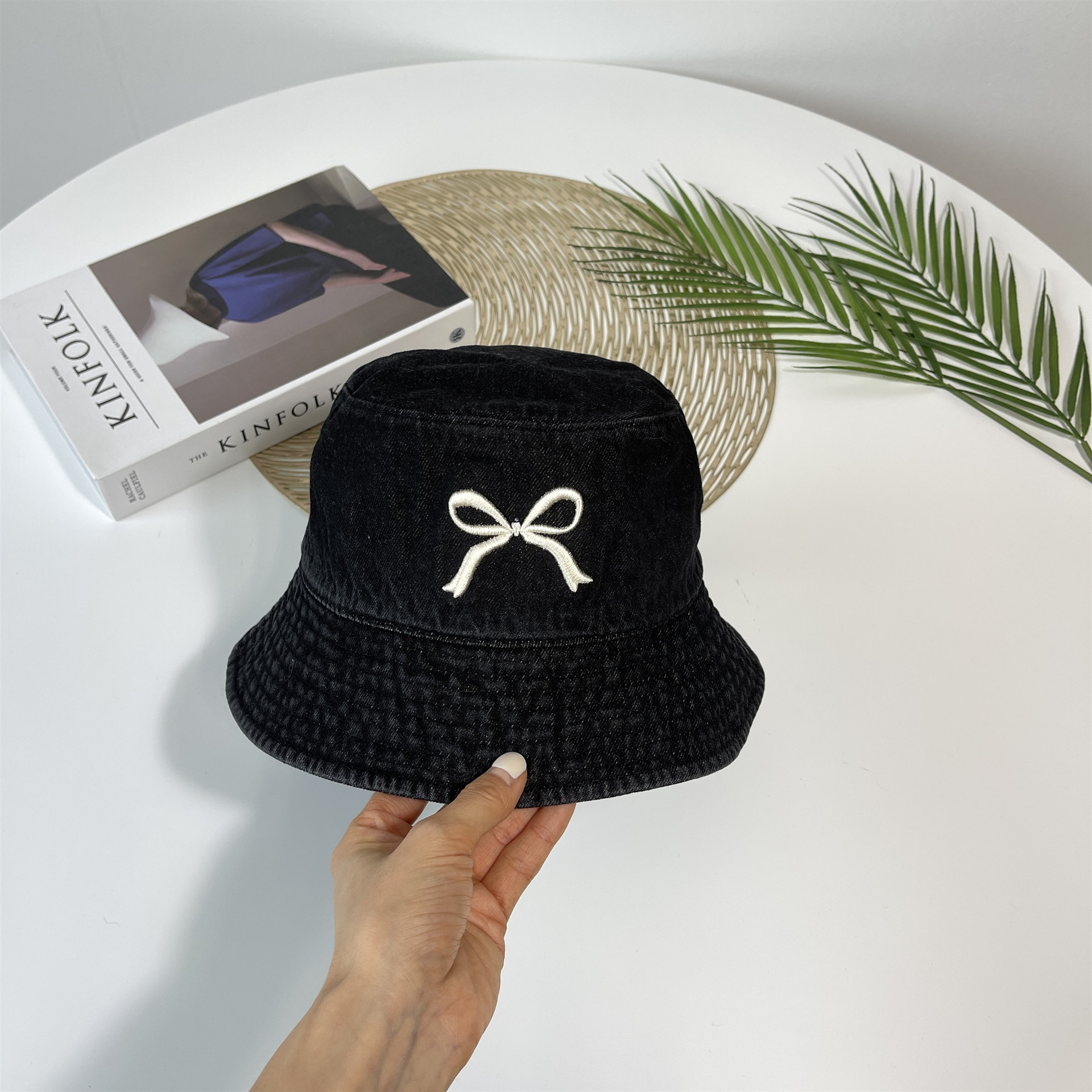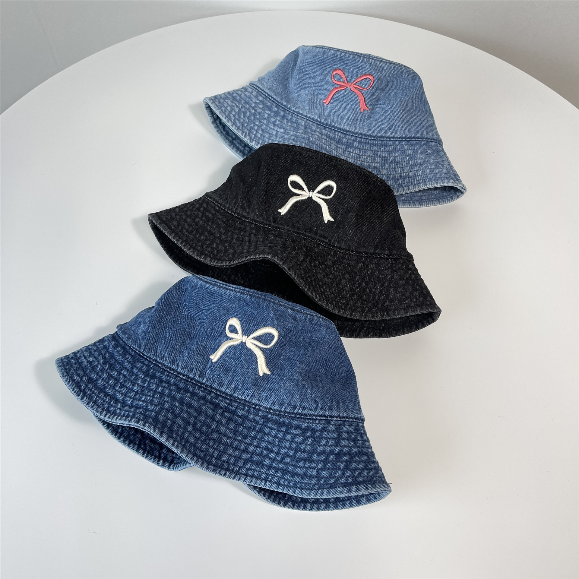 Ins韓国東大門輸入甘い蝶結び刺繍漁師帽女性旅行日焼け止め日除けカウボーイ盆帽