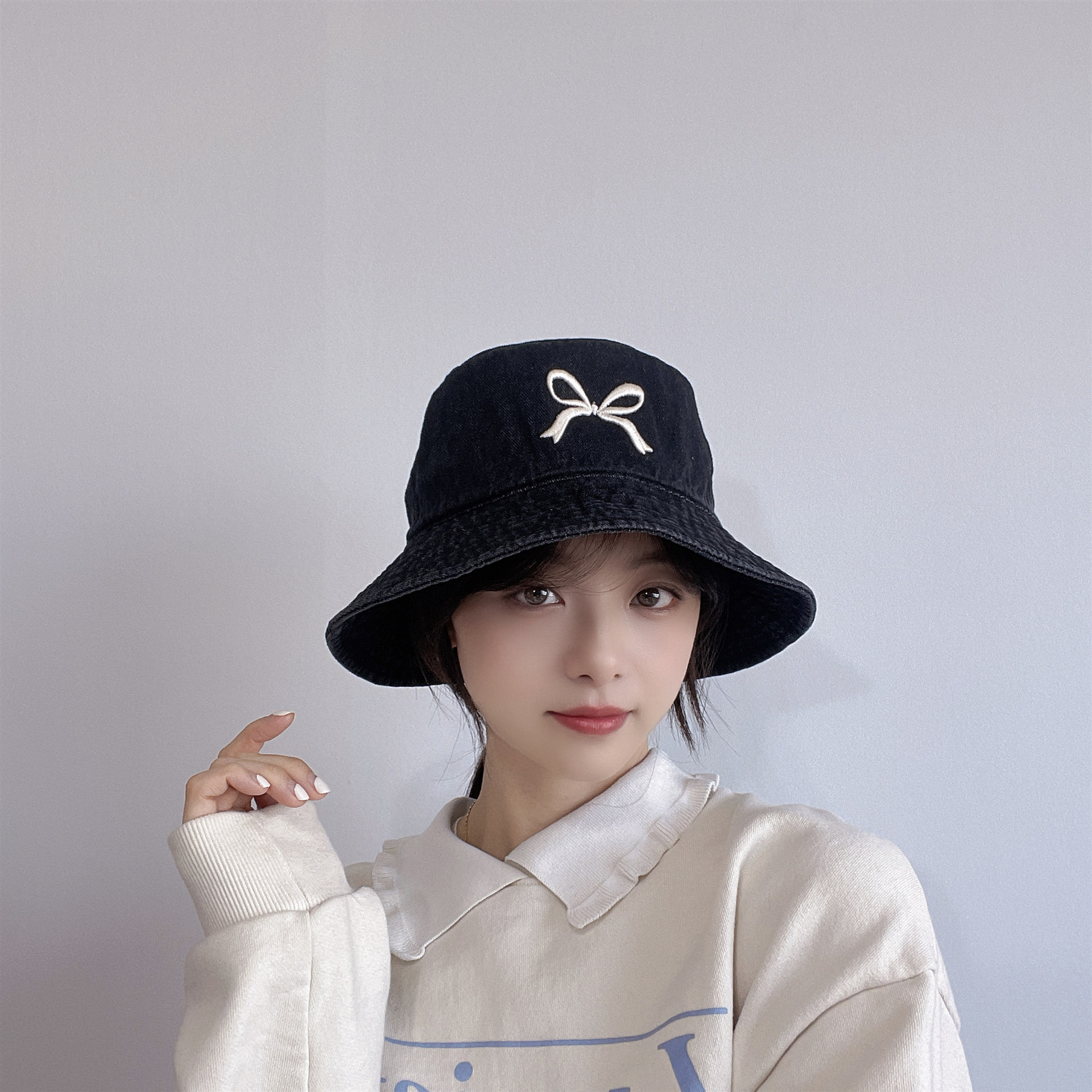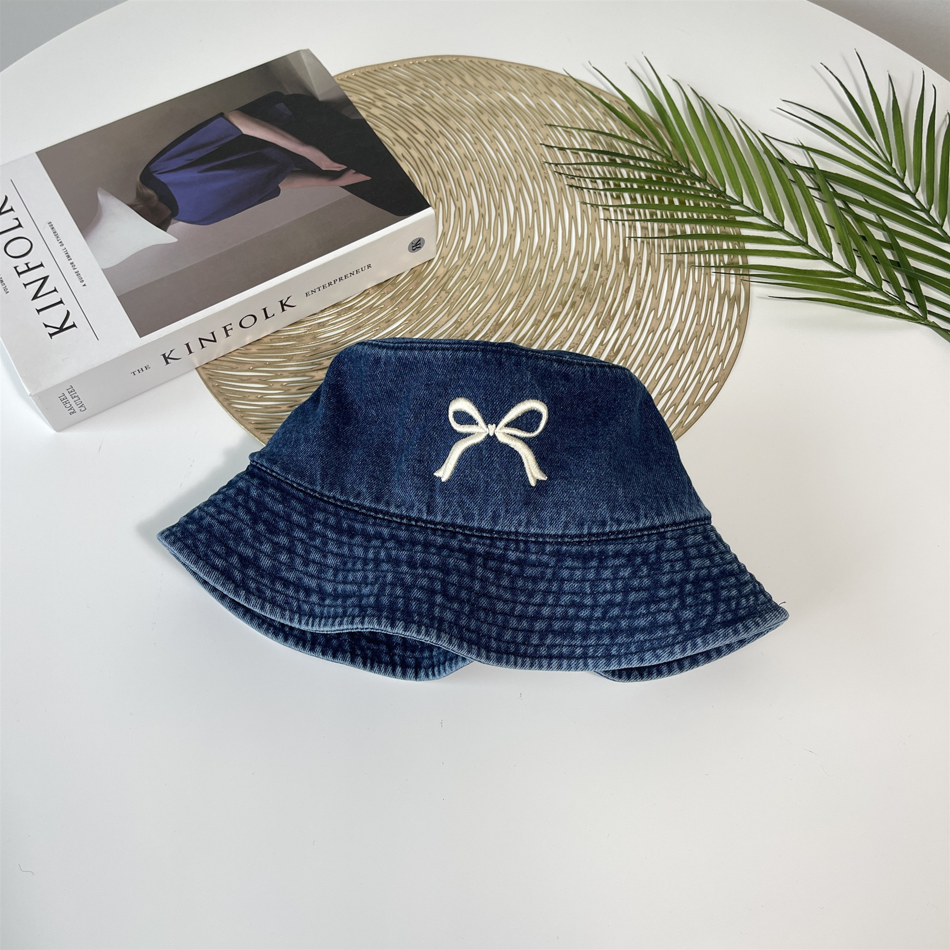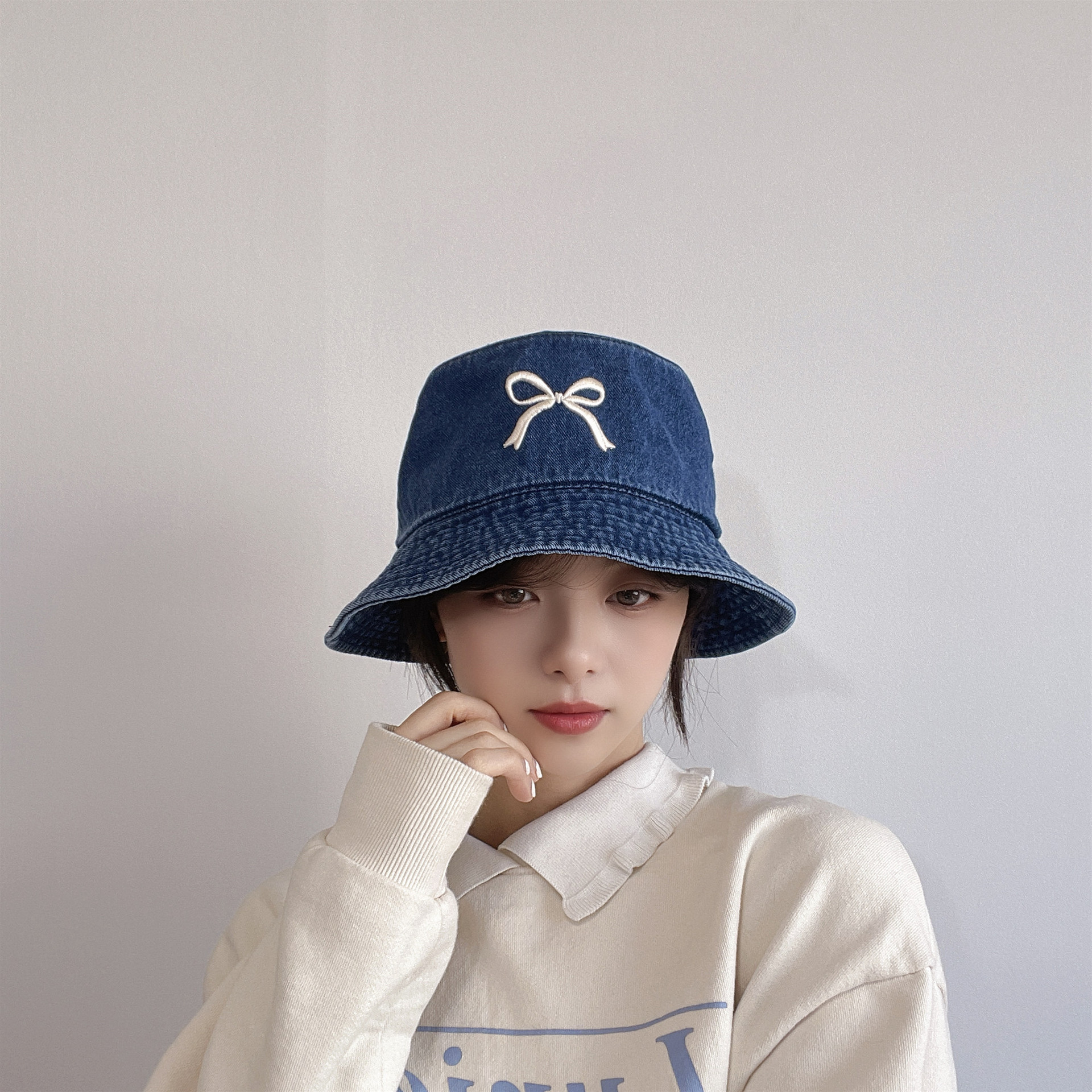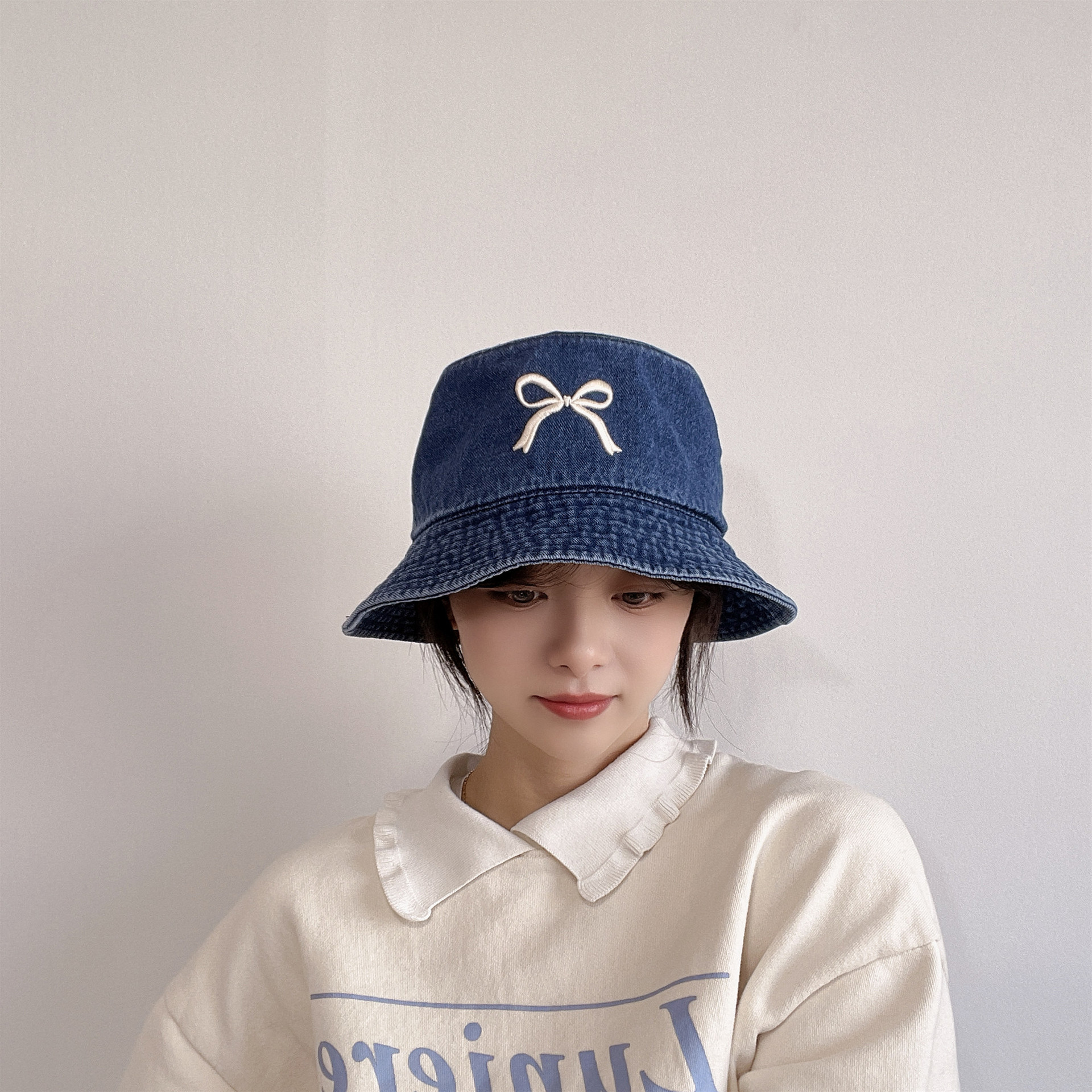 Ins韓国東大門輸入甘い蝶結び刺繍漁師帽女性旅行日焼け止め日除けカウボーイ盆帽