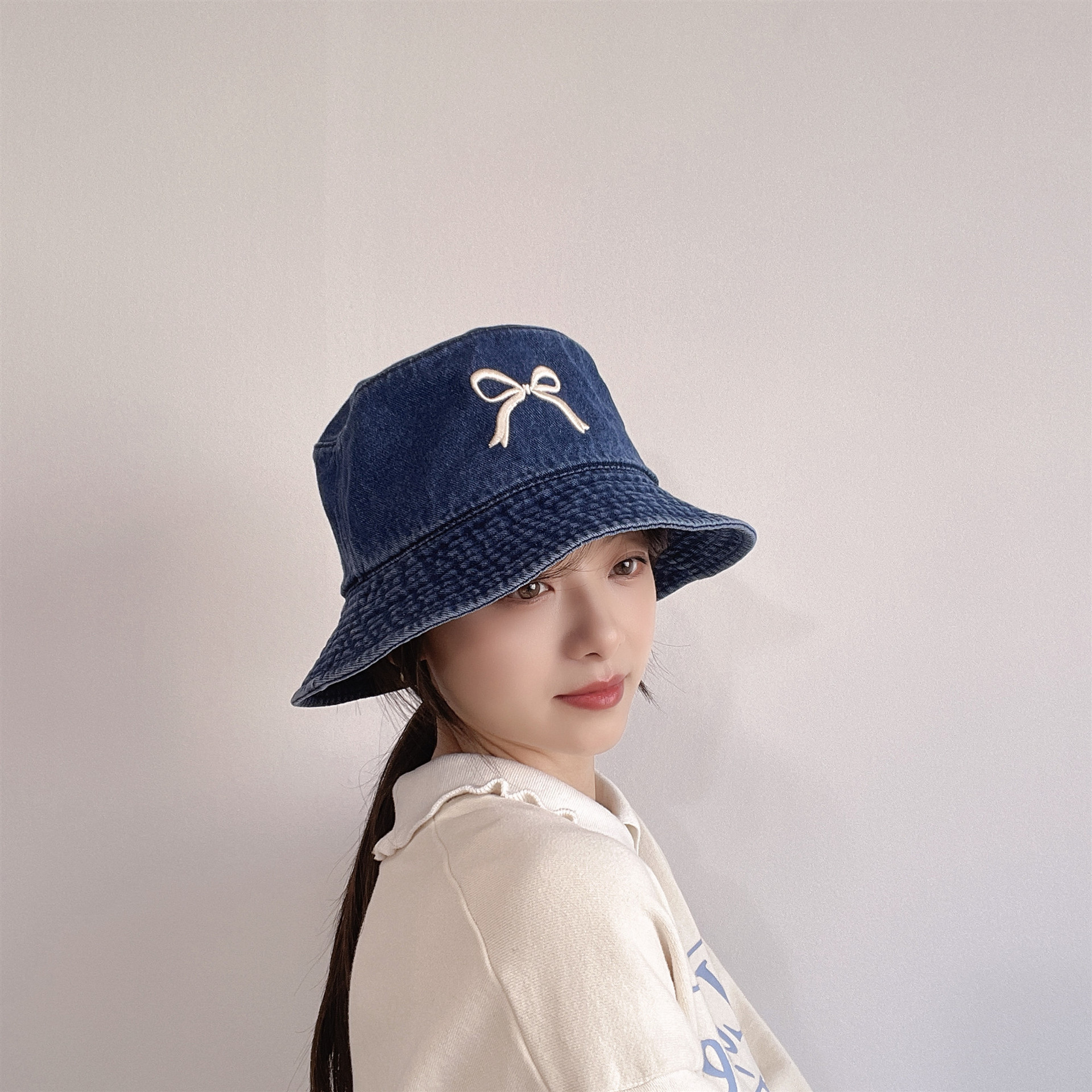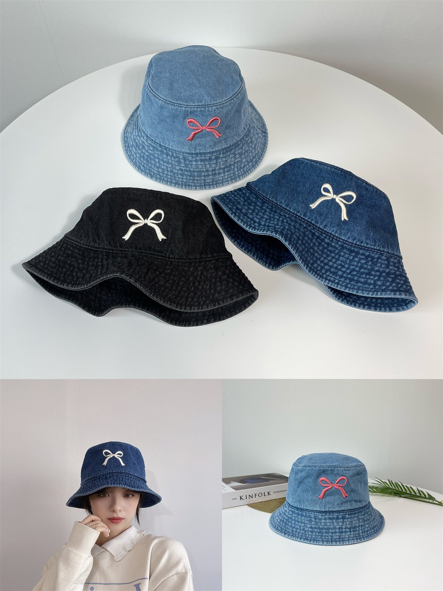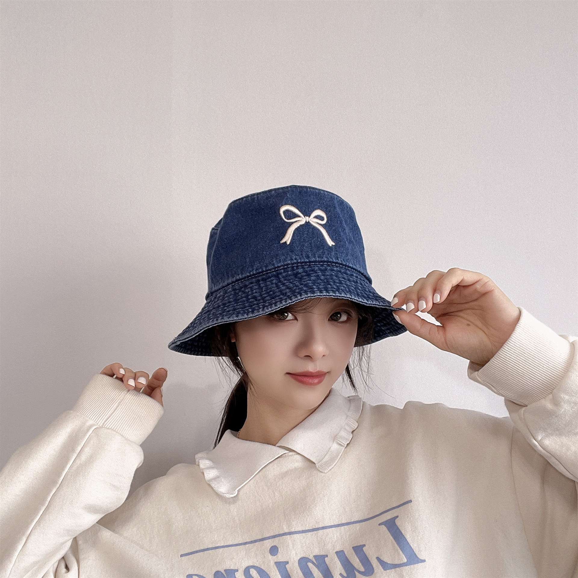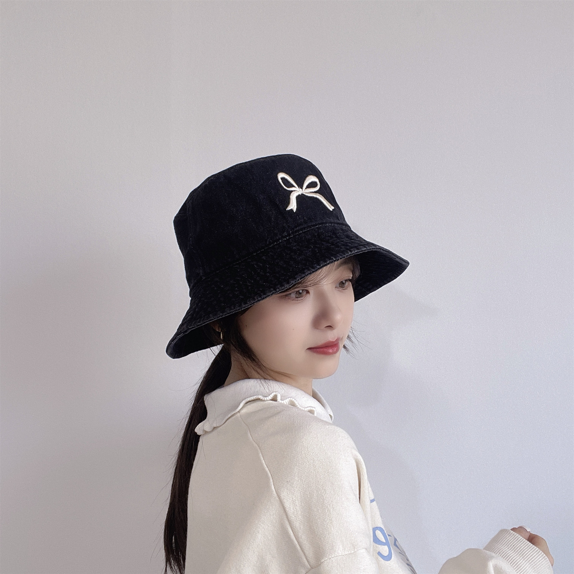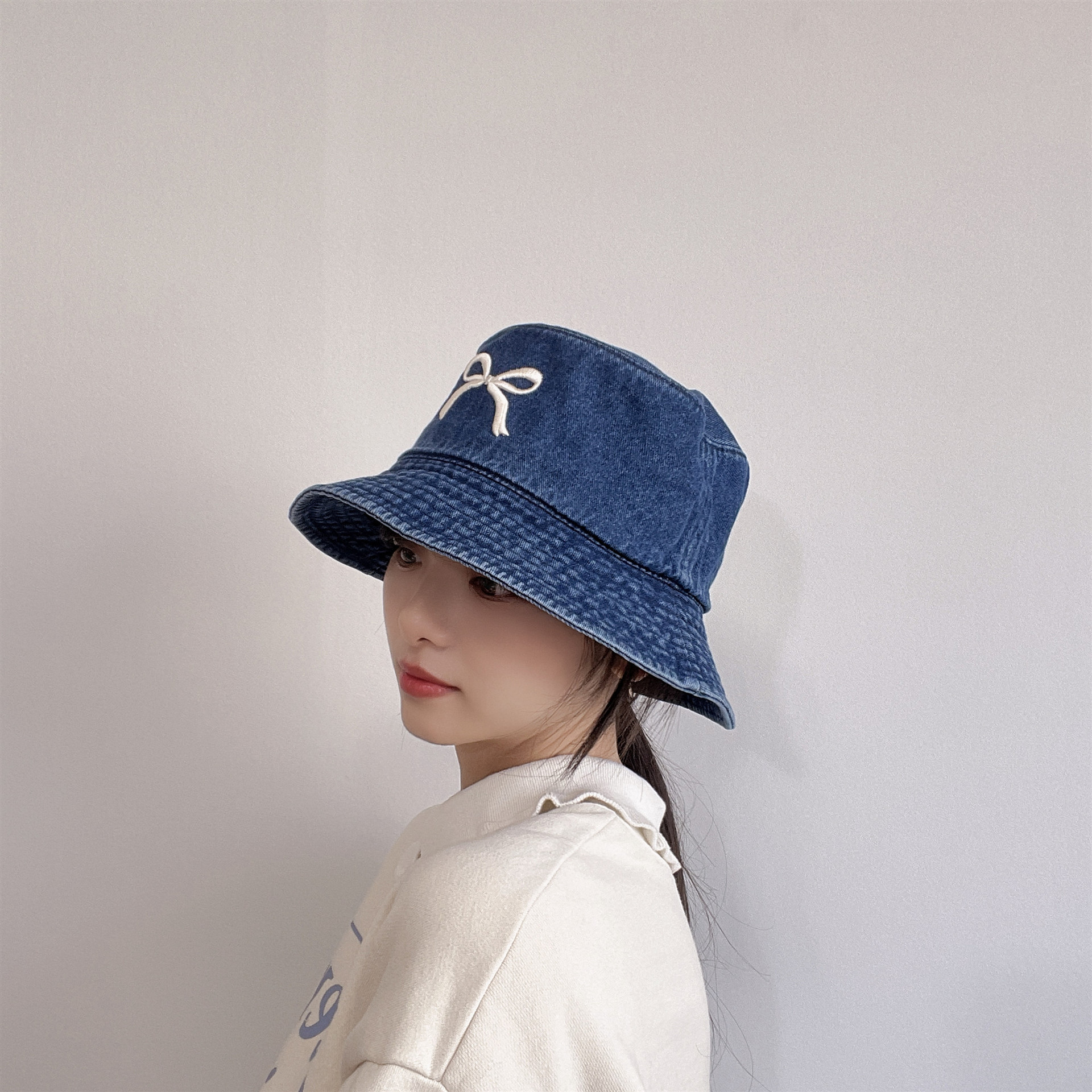 Ins韓国東大門輸入甘い蝶結び刺繍漁師帽女性旅行日焼け止め日除けカウボーイ盆帽
