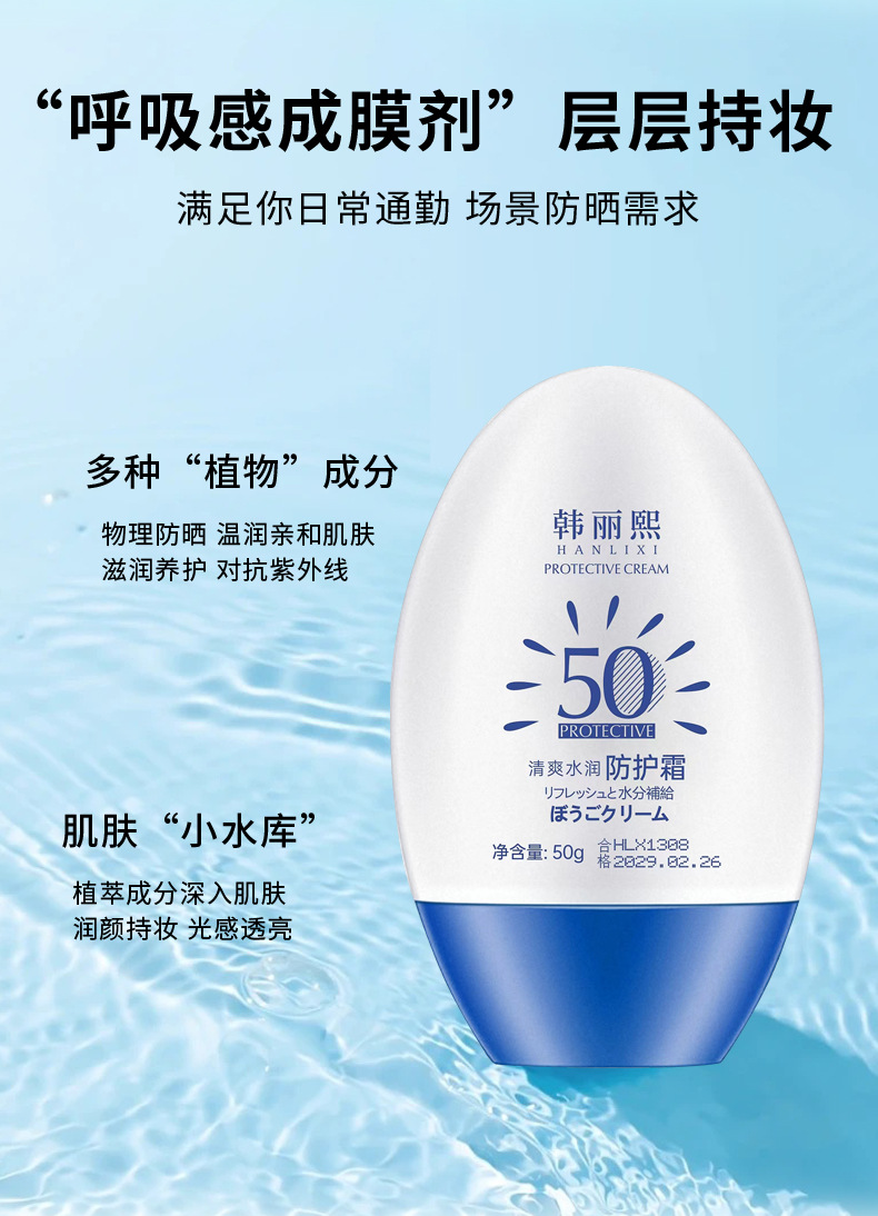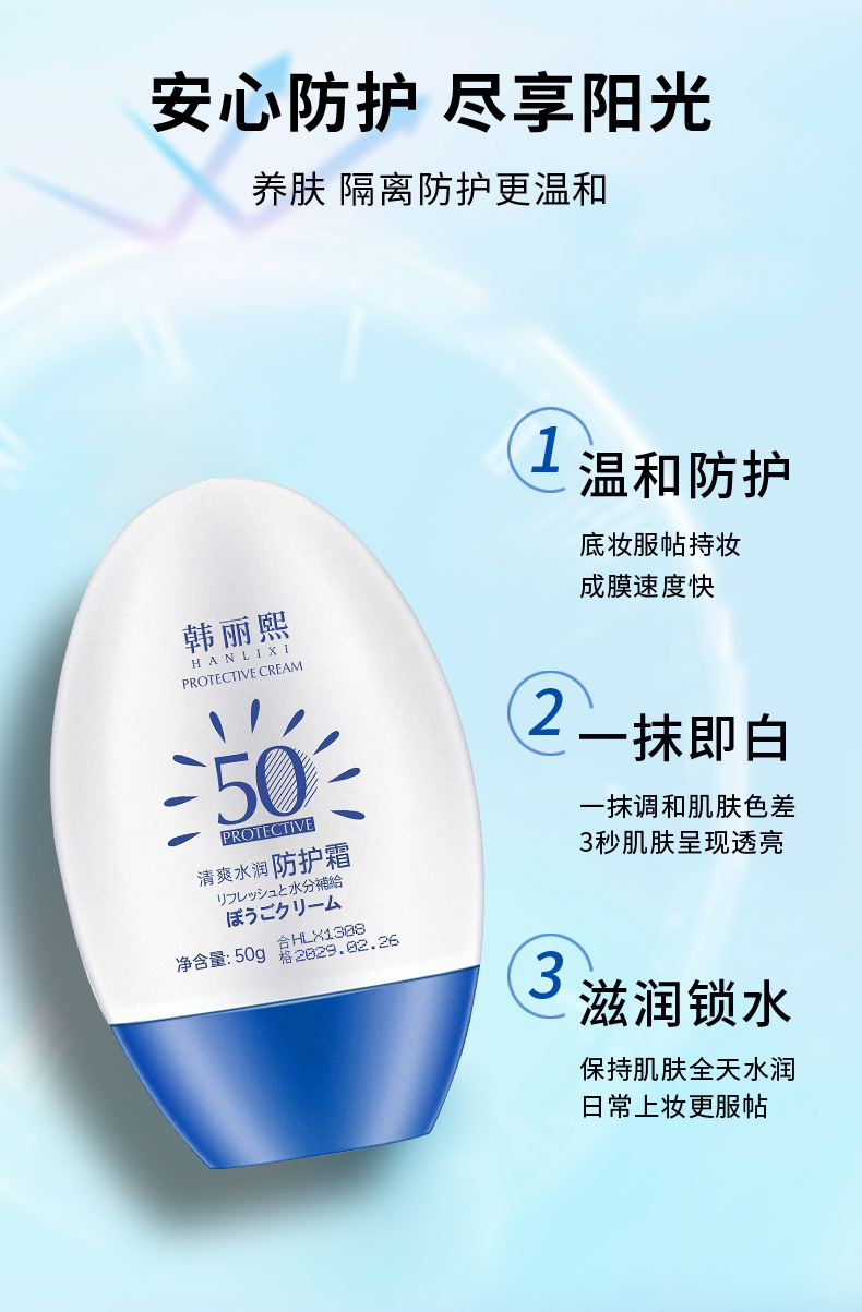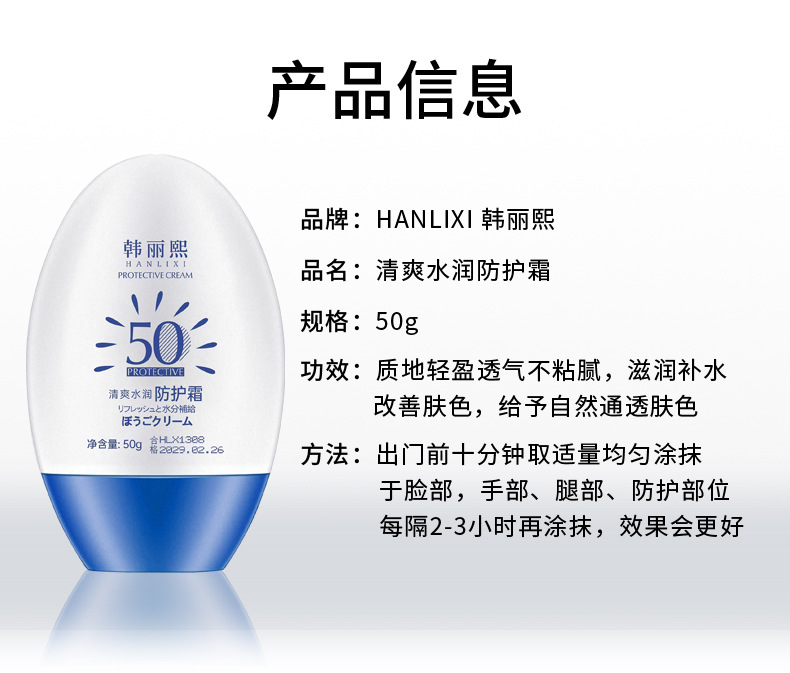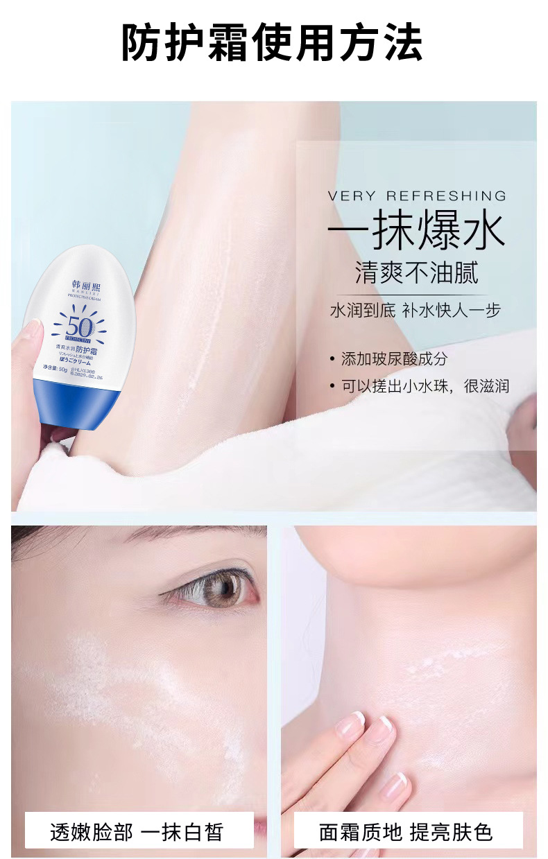 韓麗熙日焼け止めクリーム SPF50+ 美白日焼け止めローション アイソレーション 軍事訓練用 汗に強い 保湿 全身の肌を明るくする