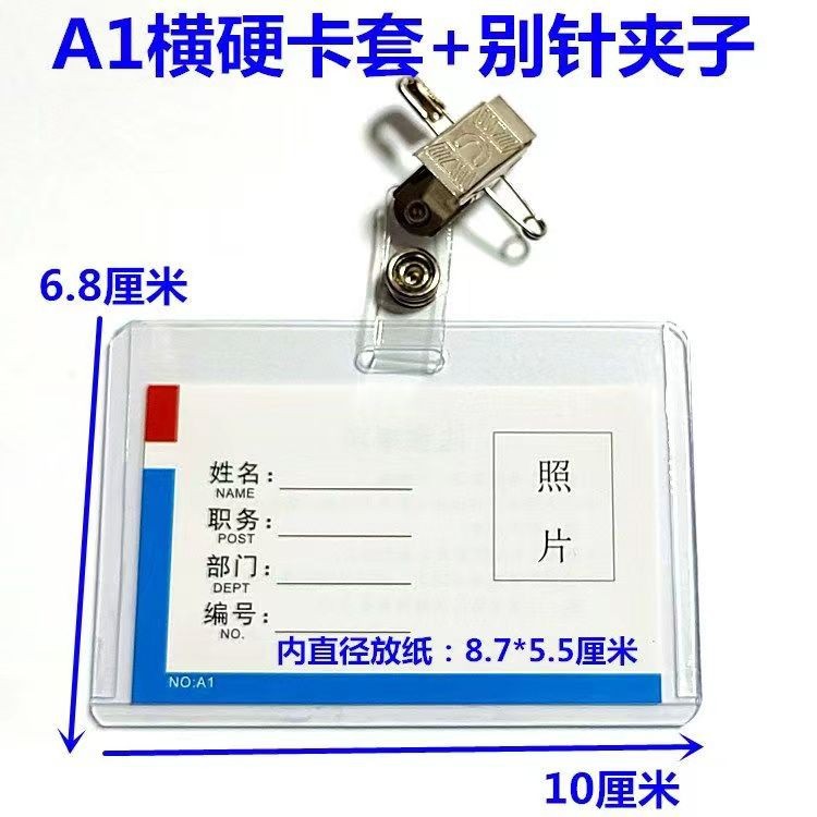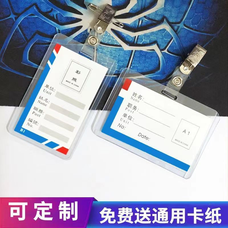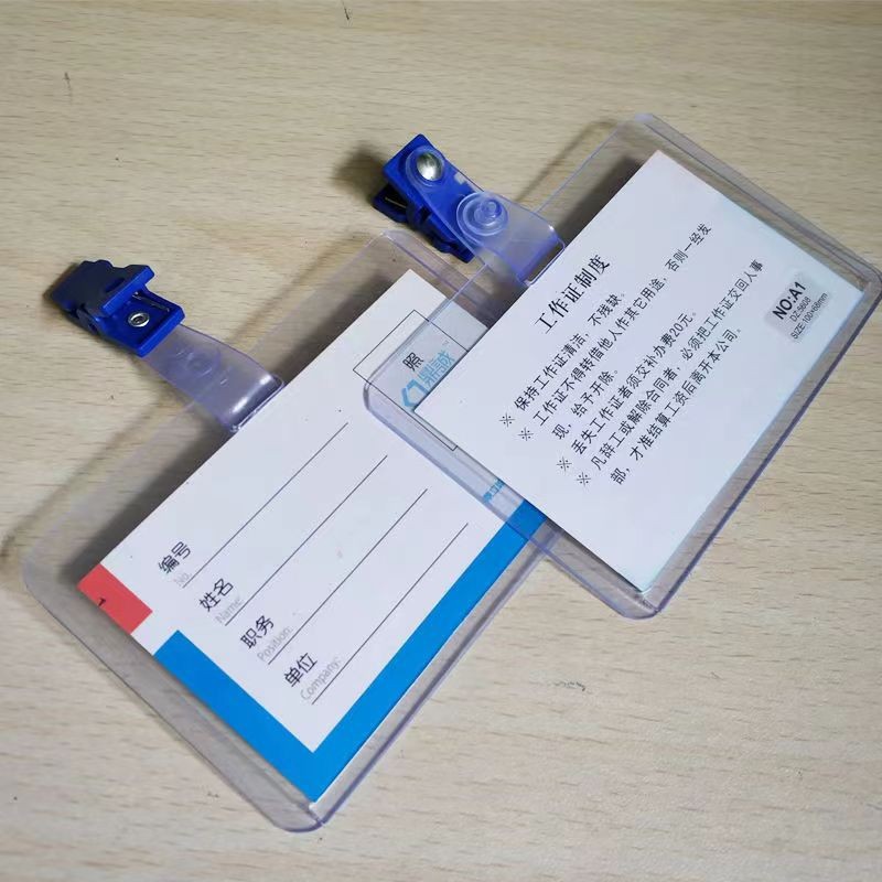 透明pvcハードカードカバー作業証クリップ工札カードカバー従業員胸札胸カードカバー入証工場札ケースクリップ