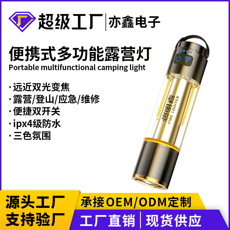 懐中電灯クロスボーダー屋外強光充電可能宝超亮遠射携帯多機能キャンプ雰囲気テント懐中電灯