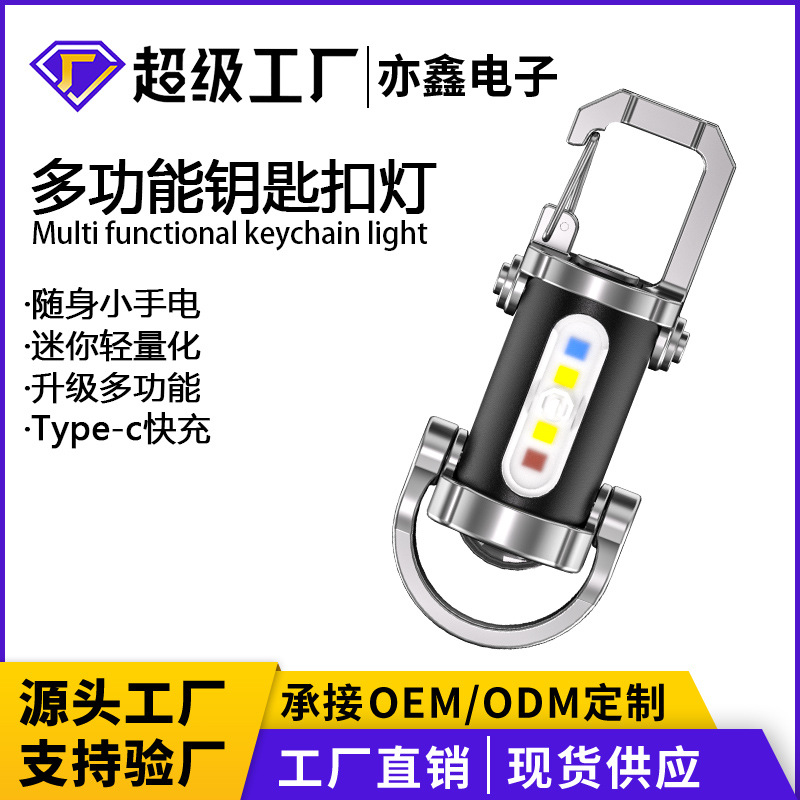 携帯型腰掛けキーホルダーミニ懐中電灯多機能緊急充電防止キーホルダー防水超大光沢