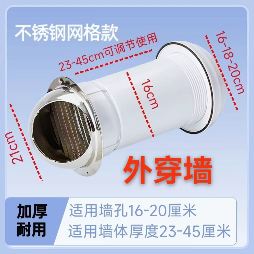 抽油烟机不锈钢墙壁163孔穿墙止逆阀防雨帽厨房油烟机止回阀室外