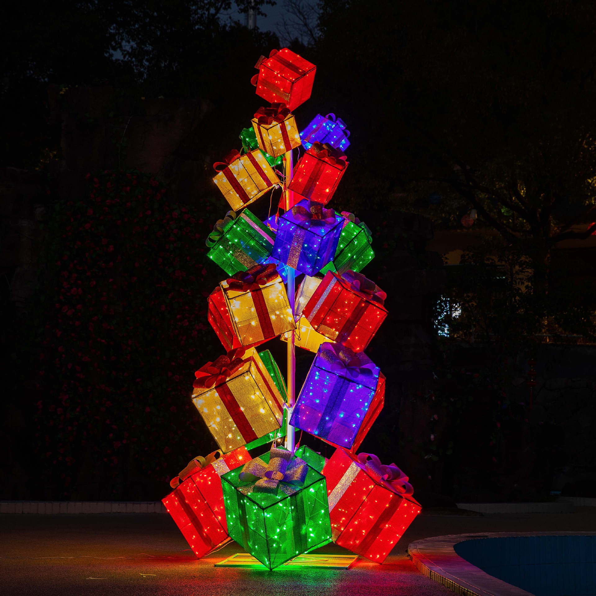 クリスマス装飾品鉄芸発光帯ledランプ屋外景観巨大ギフトボックスクリスマスツリー道具置物