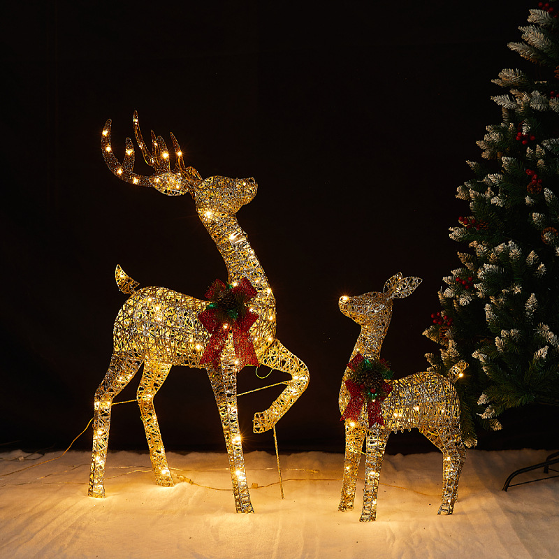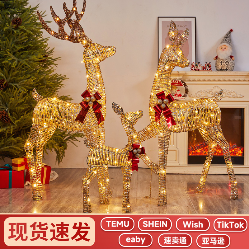 跨境亚马逊新品圣诞节装饰麋鹿发光铁艺鹿摆件店铺橱窗圣诞子母鹿