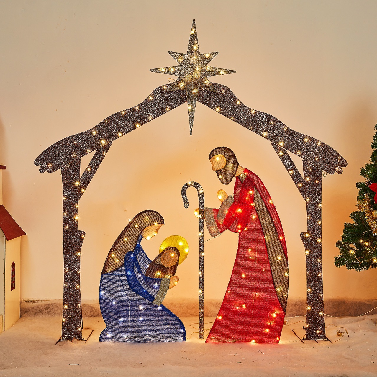 2023新作イエス诞生金属フラットledライトクリスマス感谢祭饰り4点セット庭装